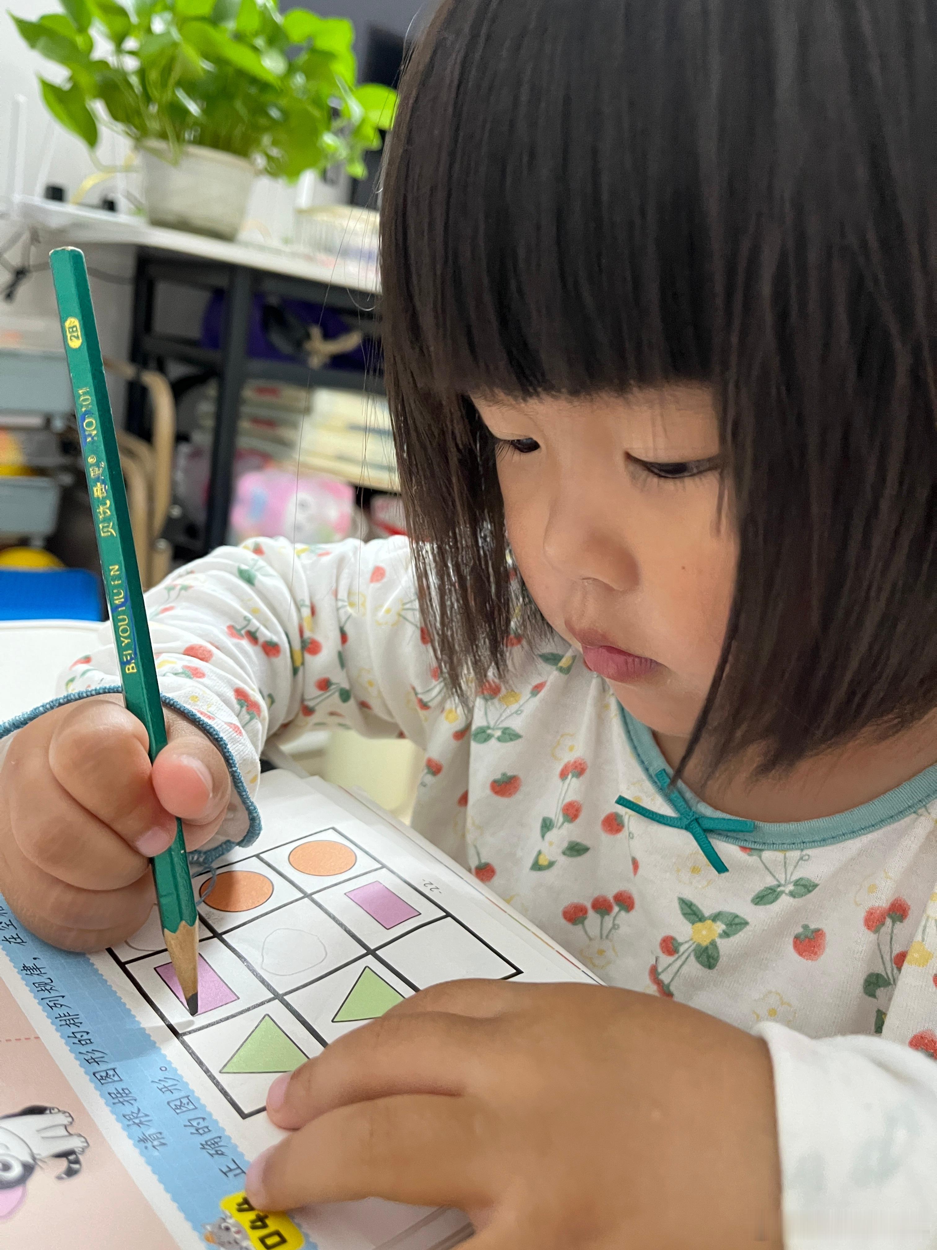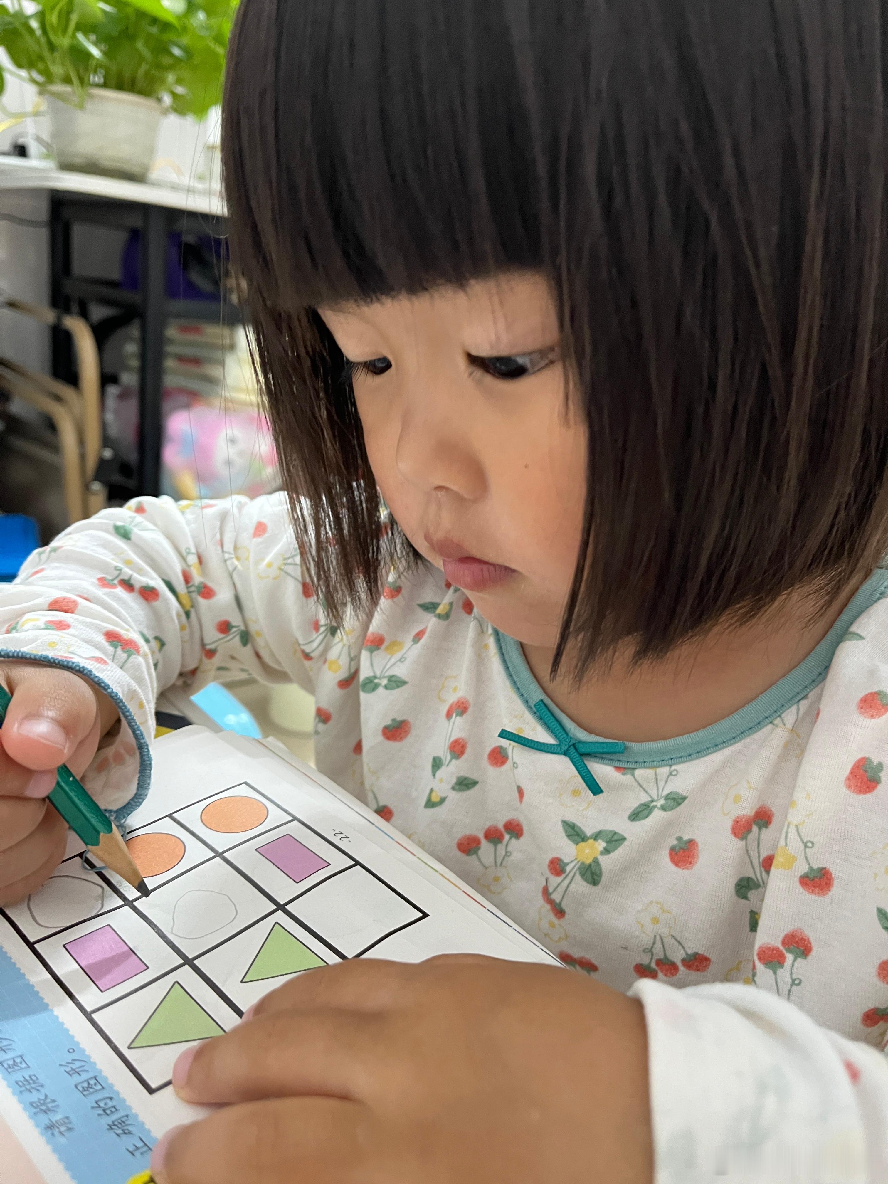 认真的娃,我给她读完书,准备带她睡觉,她说要写字,做作业。今晚写了3字,前面是她