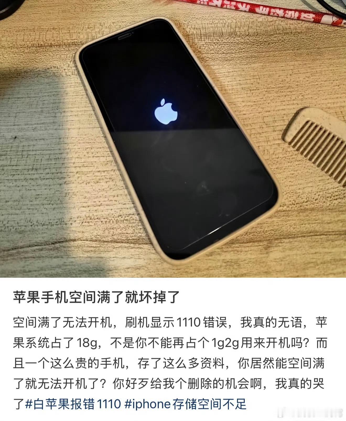 苹果客服回应iPhone内存用完就坏了 我就遭遇过一次内存满了白苹果,折腾了我一天才搞定。幸好我是双持党,没对生活造成影响
