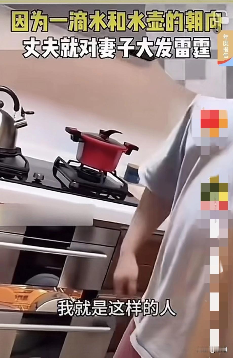 一大早上,男子起床后来到厨房,发现女子昨晚烧完水后,水壶嘴放的方向放反了。 便和