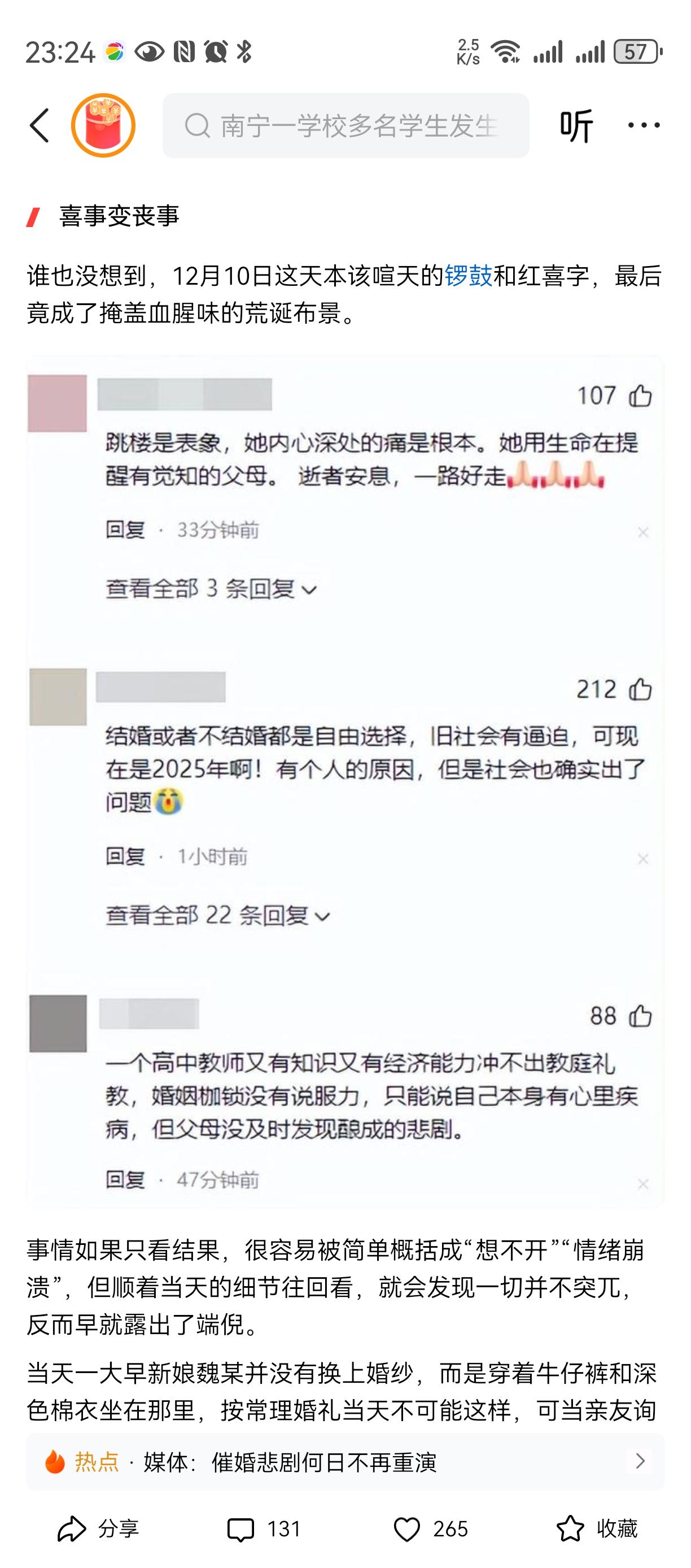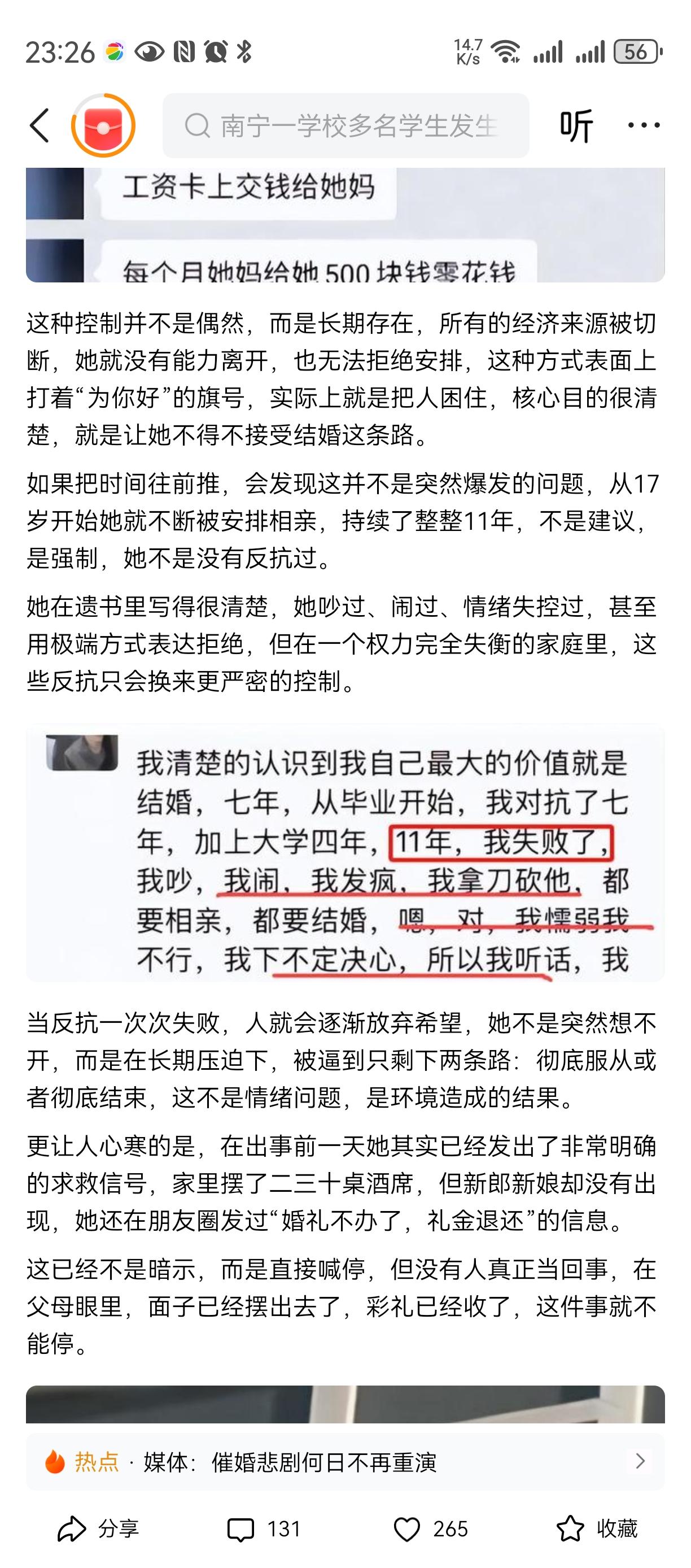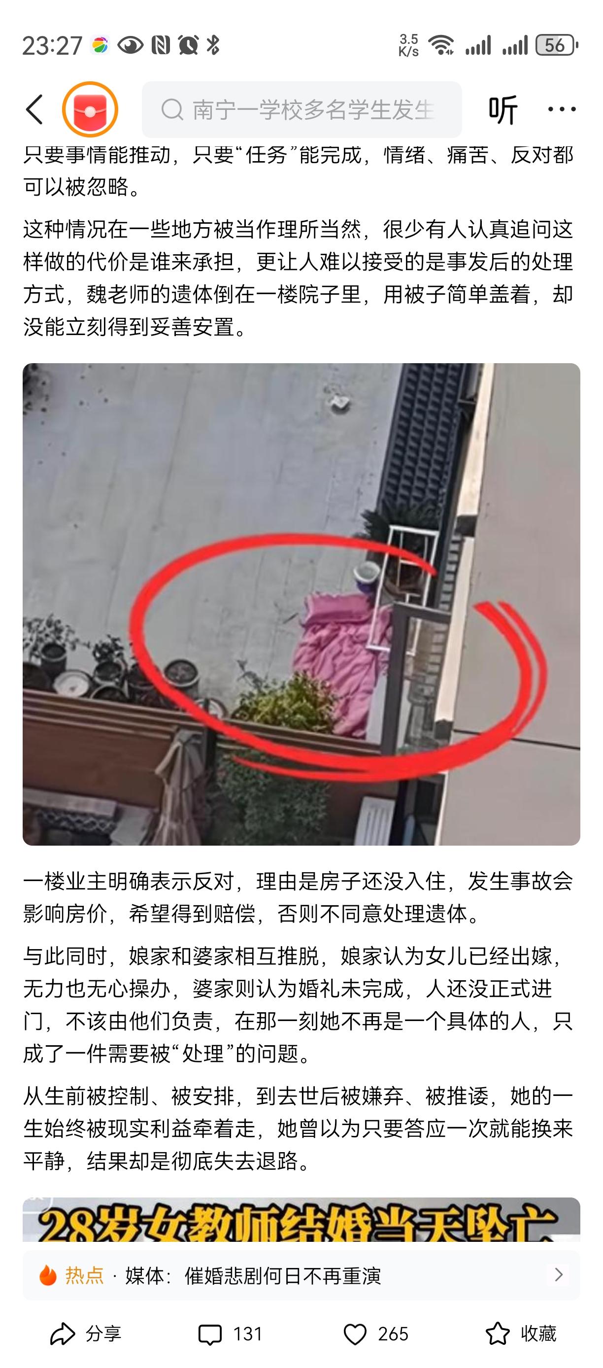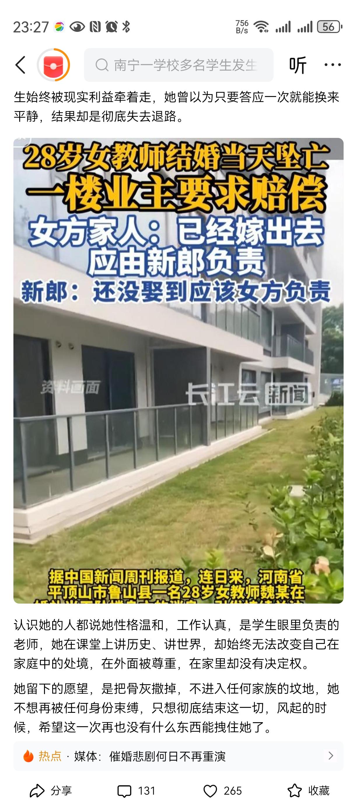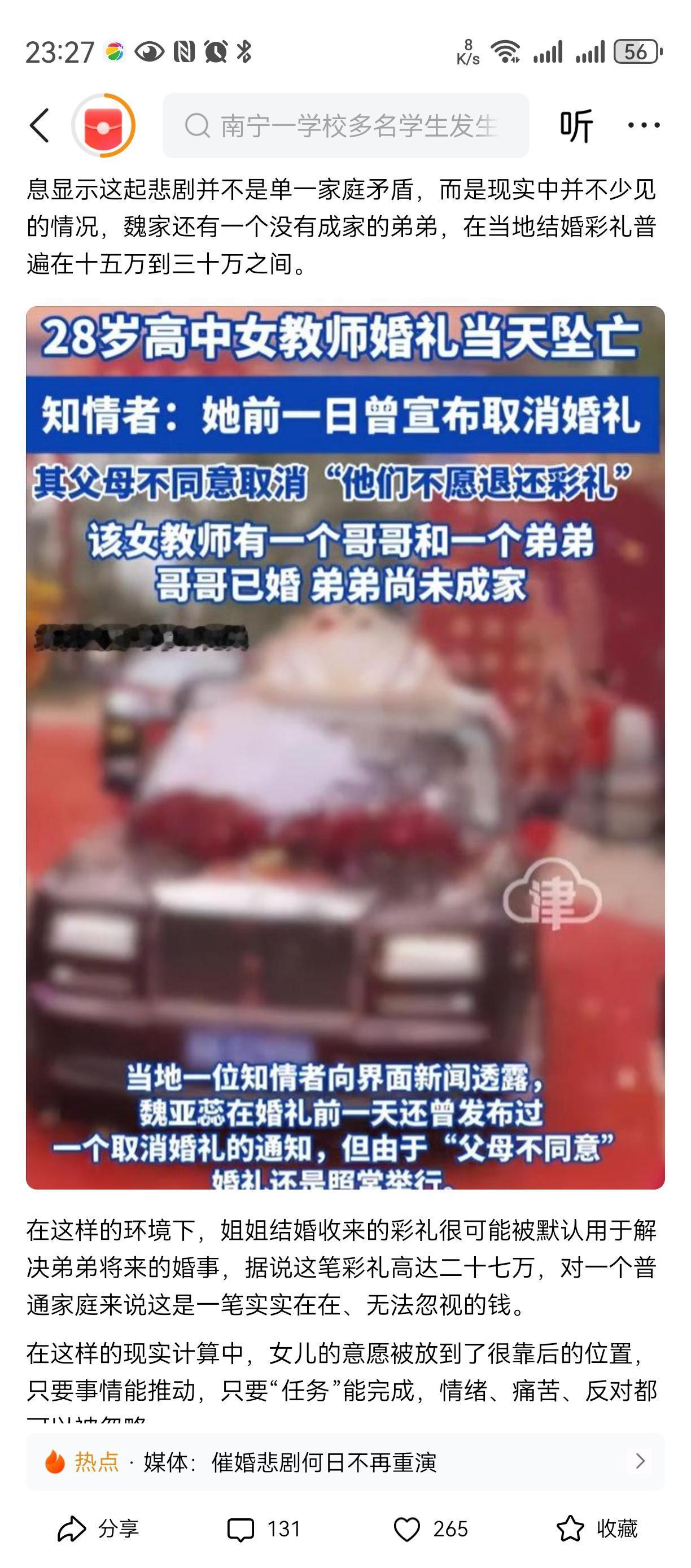 父子害死了女孩! 女孩连最后的三万元都拿出来了去, 算是还了命和钱? 彩礼二十七万给弟弟买房?? 不是带着血? 这下也拿不到吧, 男方也要求退彩礼。 不知道为何这个父亲这么冷血, 就因为他有了一儿一女还要再生个儿子, 逼着女儿早点嫁出去换彩礼??? 都是钱惹的祸! 这对父子一生应该都在自责中[祈祷][祈祷][祈祷]