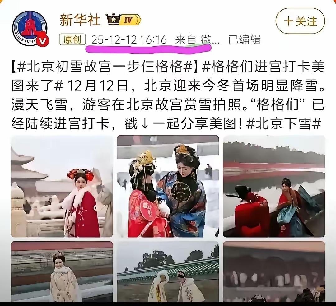 有些人的脑回路真的很奇怪,新华社16:16发个文章,他也能解释出别的意思来 公元1616年是清朝建国历史上的重要的一年,但并不意味着16:16发布文章就为了纪念这件事 再说了,要真想纪念这件事,为啥不直接定时16:44? 还有人对新华社在里边用”格格”这个词表示了异议 故宫里边这些穿着民族服装的小姑娘,怎么称呼他合适啊?用姑娘太普通,用公主太矫情,用格格我觉得恰如其分。 这个词本身就是中国传统文化的一部分,现在拿出来用怎么就不行了? 现在网络上的人真的很奇怪