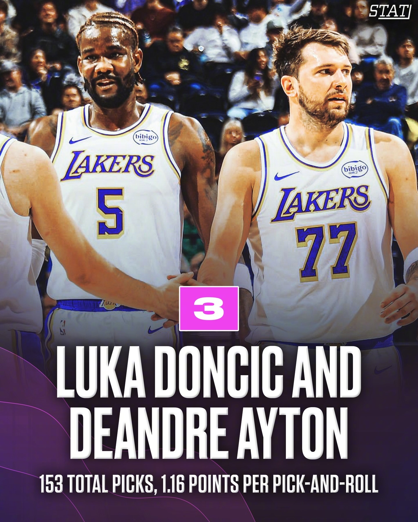 湖人本赛季挡拆进攻表现力十足,里夫斯&艾顿、东契奇&海斯、东契奇&艾顿是本赛季至