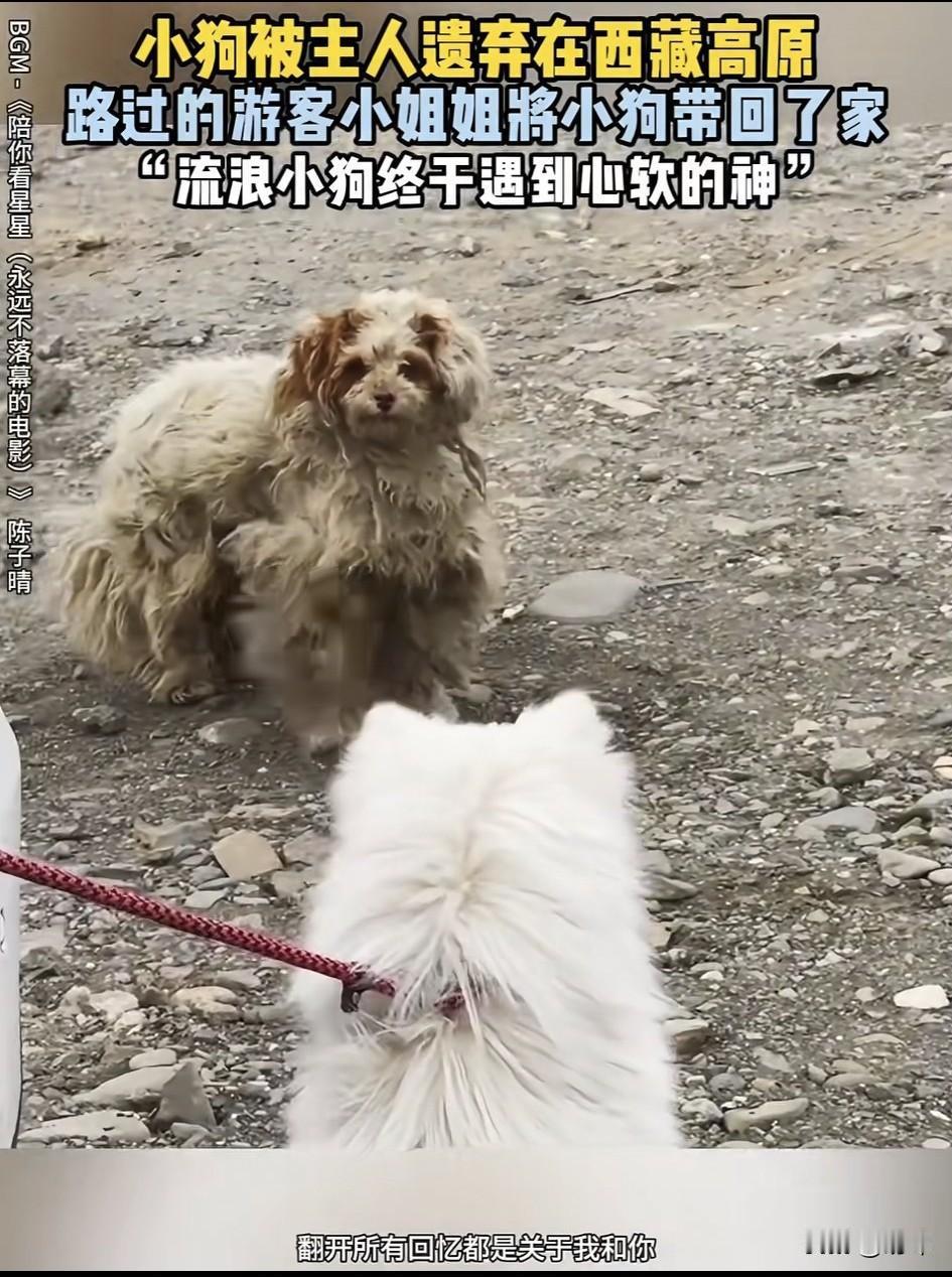 泪目了!这天一位小姐姐带着她的狗狗去西藏高原旅游,当她来到一个休息铺的时候,看到非常可怜的一幕,一只浑身脏兮兮地流浪狗站着一辆车后面,羡慕地看着小姐姐宠爱她的狗狗,它的眼里充满了期望和羡慕,而小姐姐也顿时心生怜悯,于是招呼它过来。 它不可思议地望着小姐姐,似乎在说真的吗?我可过来吗?小姐姐再次招呼它,它才怯生生地跑过来,可依旧不敢靠近小姐姐和她的狗狗。善良的小姐姐直接走过去抚摸着它的头说,走吧我养你。 就这样这只可怜的流浪小狗终于遇到了心软的神,小姐姐把它带回去还给它过生日,打扮的漂漂亮亮,干干净净,相信在她的照顾下,狗狗能过上特别幸福的生活!