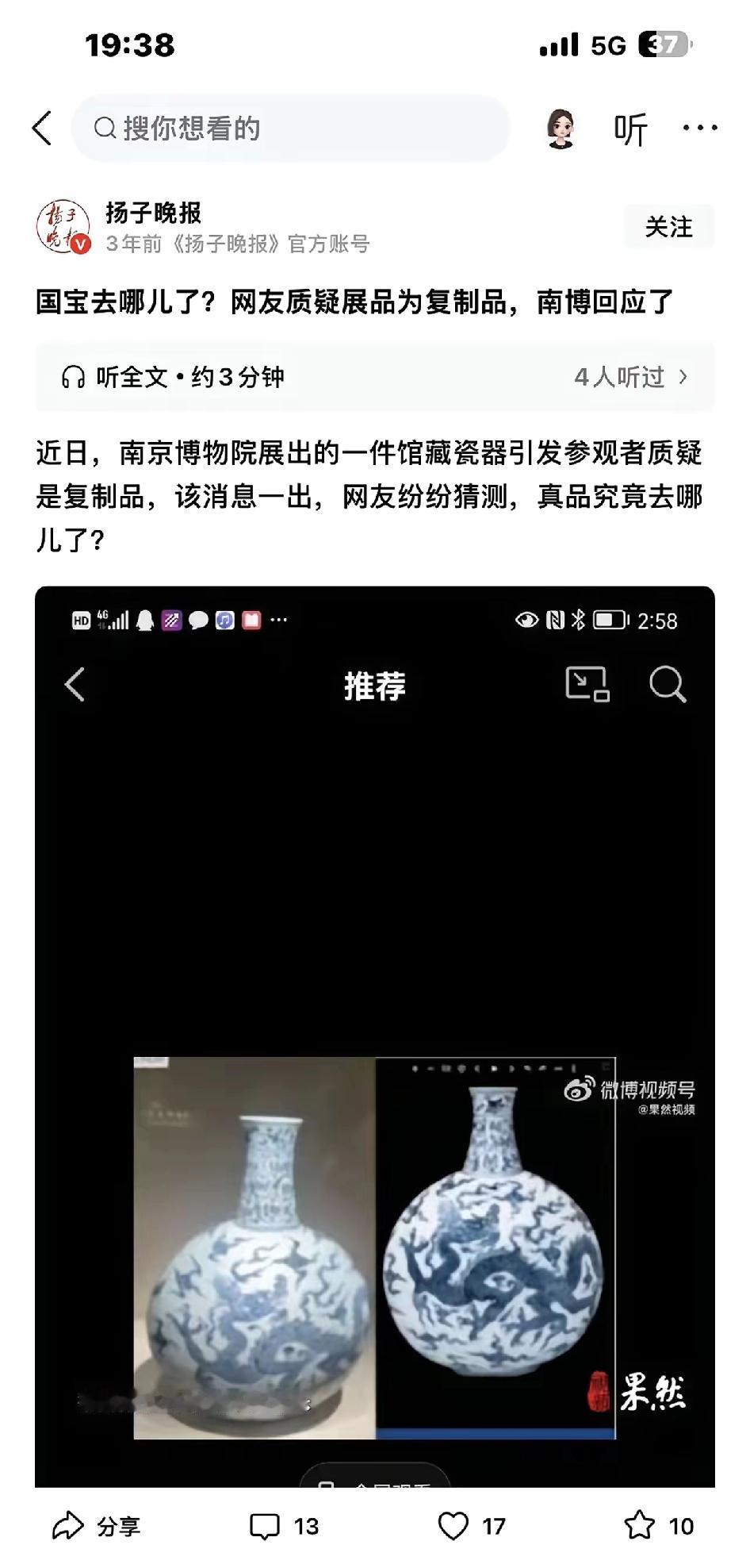 南京博物馆的事,国家文物局会介入调查,一定会查清事实。从馆藏国家文物,变成了私人财产,这是抢夺人民的财产,这是醉饭,不可饶恕,不可饶恕。 博物馆任何的意外出现,都是严重的违Fa行为,没有也不能宽恕。 文物不是一件商品,这是几千年的传统文化,是中华儿女心里的文化认同,如果有人要轻视,打这些文物的坏主意,一定不会得到人民的原谅,下场一定是可耻的。 对此,你怎么看?南京侵华博物馆 南京国家文物 南京博物院 南京愽物馆 南京城墙博物馆 南京博物馆印章 国家文物保护法