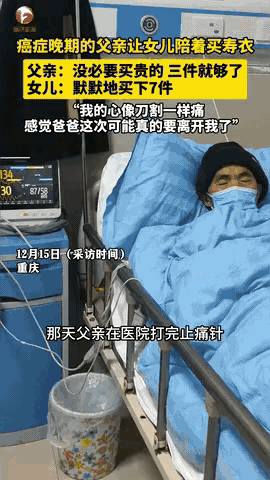 “泪目了!”重庆,一父亲肝癌晚期,在医院打完止痛针后,突然提出,让女儿陪他出去买寿衣,不料,到店里之后父亲说:“没必要买贵的,买3件就够了!”但是,女儿却默默买了7件,女儿坦言:“心像刀割一样痛,感觉爸爸这次可能要离开我了!” 父亲拿着3件朴素的寿衣,反复摩挲面料,念叨着够穿就行,别花冤枉钱。女儿背过身擦眼泪,指尖攥得发白。 店主看出端倪,悄悄给女儿推荐了几款保暖性更好的款式,价格没贵多少,女儿咬着唇全部拿下,又添了两双防滑的棉鞋。 回家的路上,父亲走得很慢,每一步都透着无力,却还笑着安慰女儿,说人终有这一天,不用太难过。 女儿点点头,不敢开口,怕一说话就哭出声,只能紧紧挽着父亲的胳膊,感受着他手心的温度。 夜里,女儿把寿衣叠得整整齐齐,又在每件衣服口袋里塞了一张全家福,照片上的父亲笑得灿烂,那时他还没生病。 她心里盼着这些衣服永远用不上,又怕真到了那天,父亲连件舒心的衣服都没有,这份纠结像石头压得她喘不过气。 亲情就是这样,明明痛到极致,却还要笑着成全,用最朴素的方式,给彼此最后的温暖。