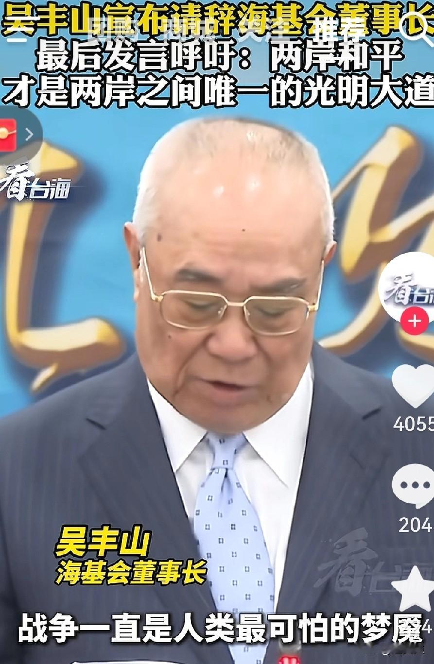 台湾海基会吴丰山辞任,应该是他也失望,他的徒儿赖清德一路狂奔走向台独。 他在卸任时说,两岸和睦相处才是唯一出路,两岸和平才是两岸之间唯一的光明大道。战争意味着血流成河,不希望战争。人之将死其言也善。他应该以死去谏言赖清德,别害人害己了。 这个机构成立的初衷就是为了两岸和平交流,吴丰山想来大陆交流,赖清德连恩师的面子都驳回了,更不要说是行使职权。海基会解散的可能性还是较大的。除非国民党上台立马启动两岸和平谈判,这机构没有用了。
