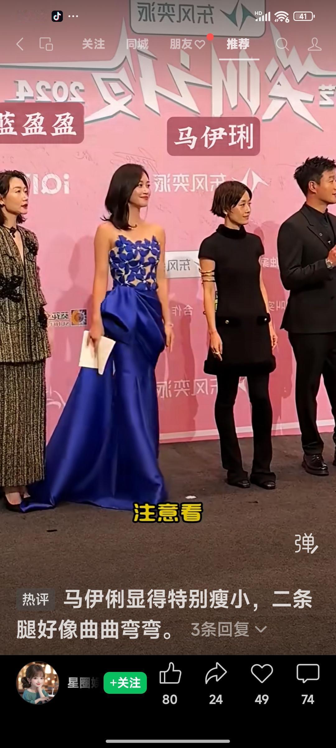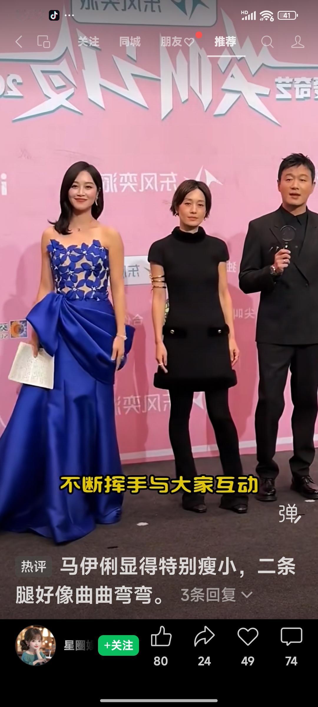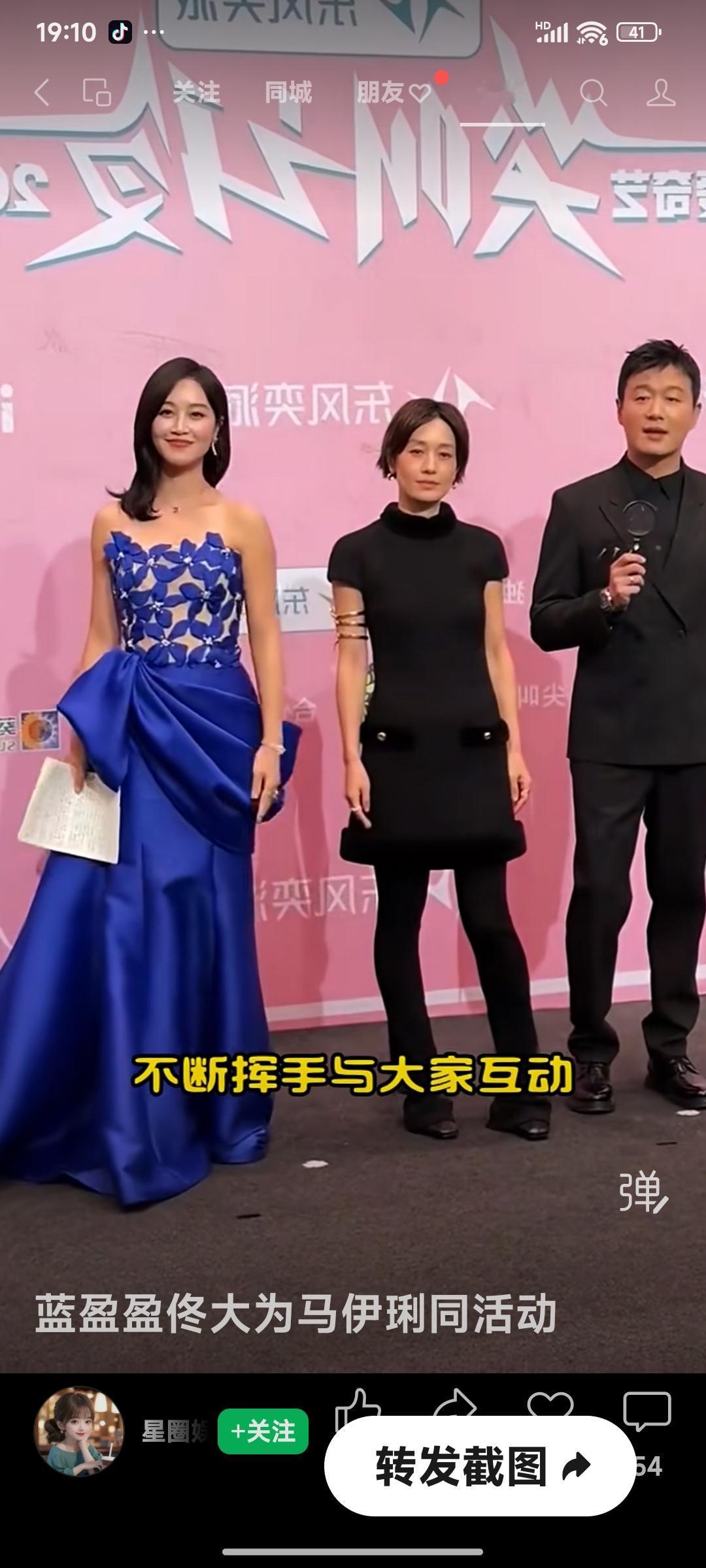 一级演员的淡定自若与三线演员的竭力讨好观众,二者形成了鲜明对比。 马伊琍和蓝盈莹同框时的情形:一线演员马伊琍全程板着脸,沉默不语,纹丝不动,那神情仿佛别人欠了她钱一般。 而身为三线演员的蓝盈莹却是满脸笑意,不停地转来转去变换姿势,摆着Pose,还频频招手示意。 论颜值,马伊琍的五官比蓝盈莹更为出众,只是身材没有蓝盈莹高挑,站在一起稍显吃亏。 论演技,马伊琍稍占上风,不过蓝盈莹的演技也不容小觑。 论成就,马伊琍则完全碾压蓝盈莹。 大家怎么看呢?