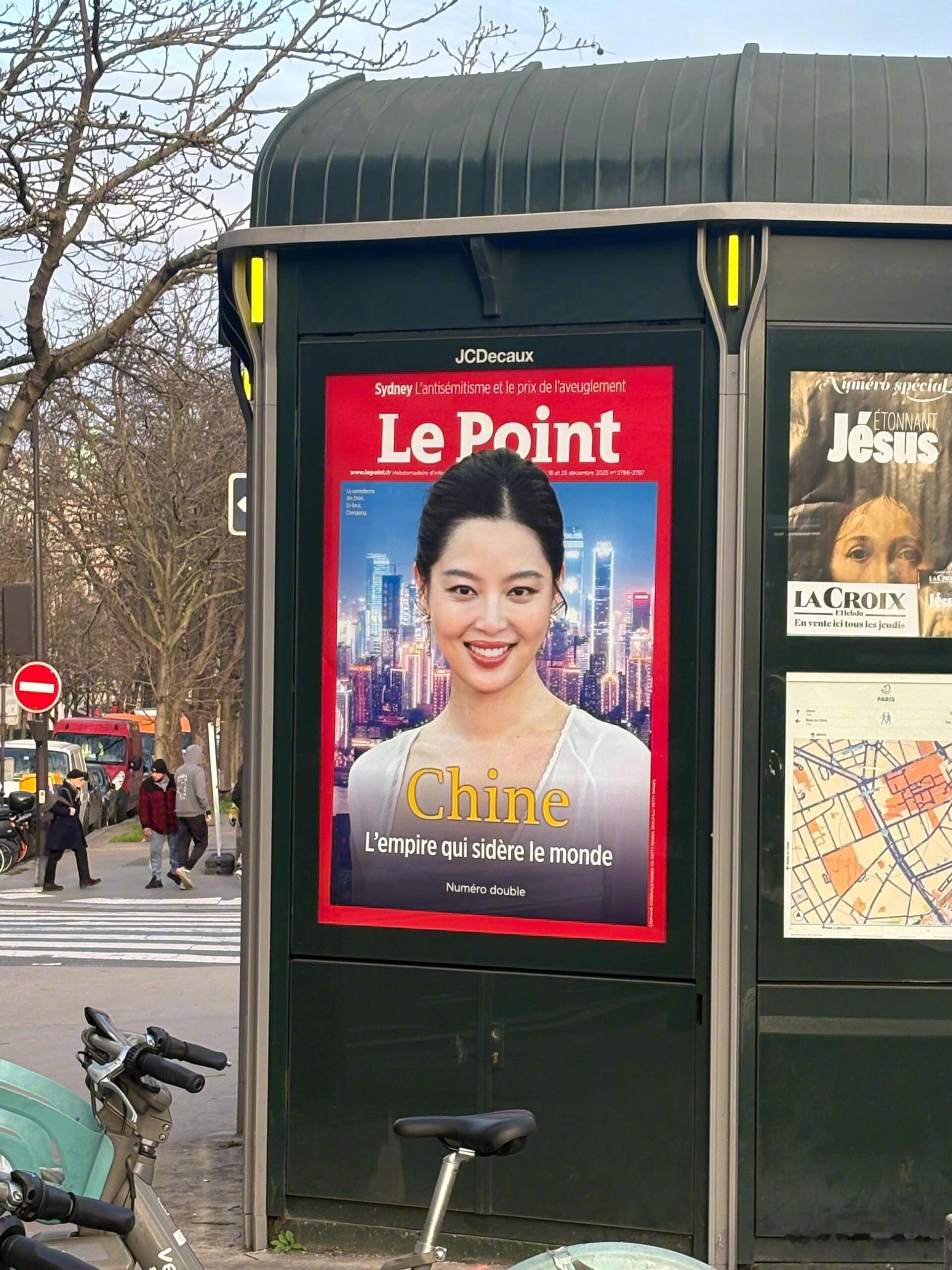 巴黎报刊亭都贴上了辛芷蕾的大海报,“令世界震撼的帝国”权威的标题,配一张权威的脸,好骄傲!