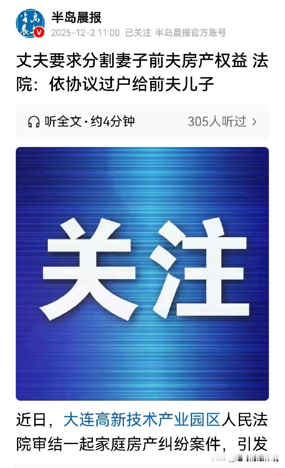 空手套白狼?辽宁大连,女子的丈夫亡故后,留下一套房子,由两人的儿子一直住着,女子再婚,和现任丈夫住在她名下的另一套房子里。因为房改,她将亡夫的那套房子过户到儿子名下时,现任丈夫跳出来称,房子是他和妻子的共同财产,他要分割一半。继子主动让步,放弃母亲名下其他房产的继承权,换来继父的成全,但继父就是不松口。继子无奈,将母亲和继父告上法庭,并提供了一份证据。法院这样判。 张娟和丈夫大明,婚后生育了儿子小明。 他们住在大明单位分的一套小房子里,房子的承租权,登记在大明的名下。 单位的房子,产权归集体,他们只有居住权。 1992年,这套老破小终于动迁,他们一家换了一套二居室的房子。 谁知天不逐人愿,好日子没过几年,张娟的丈夫大明不幸病逝。 家里只剩母子俩相依为命, 张娟是个要强的人,她带着儿子又上班又打拼,又买下了其他房产。 儿子长大后,张娟就想找个伴安度后半生。 后来,她和李会相识,并结为夫妻。 李会没有自己的房子,两人婚后住在张娟名下的另一套房子里。 张娟再婚后,由前夫大明承租的那套房子,儿子小明一直住着。 本来双方各过各的日子,一直相安无事。 2024年,小明住的那套二居室,单位通知,房子需要办理产权证。 小明通过了解,如果房子办理到母亲的名下,用母亲的工龄购买,房子的价格会便宜不少。 房子过度在母亲的名下,然后双方再以亲属过户的方式,把房子的产权登记到小明名下。 小明和母亲商量,毕竟是母子连心的亲娘俩,张娟觉得对儿子有利,立马就答应了。 为了怕继父多心,小明主动提出自己掏钱购买产权。 这本是母子之间的事,用不着和谁商量。 可万万没想到,等房子办理了产权,暂时登记在张娟名下时,麻烦事儿来了! 继父李会突然有了想法,他认为,既然是张娟名下的房产,自己和张娟是合法夫妻。 那么房子就属于夫妻共同财产,房子的产权,有一半应属于自己。 就在张娟和小明去办理过户房子时,李会及时的跳出来阻止,要求分割房产。 如果张娟执意将房子过户给小明,他要求小明,将房产的一半算成钱给他。 小明为了母亲不夹在中间受窝囊气,主动求和。 他给继父协商,母亲名下的其他房产,自己有继承权。 只要过户父亲留给自己的房子时,继父不找事,他可以放弃母亲名下其他房产的继承权。 这本是小明孝顺,为了减少矛盾做出的让步。 如果继父明事理,就坡下驴,让妻子和继子顺利过户那套本就跟他毫无关系的房产。 可李会似乎故意找不痛快,他称,妻子将前夫名下的房子过户到她的名下。 自己作为张娟合法的丈夫,这套房子的产权,就自动有一半属于自己,张娟无权单独处置。 换句话说,就是张娟已经对那套房子说了不算了! 小明和张娟终于看出李会的企图,之前他一声不吭,等的就是,房子办理到张娟名下,他再直接提出分割夫妻共同财产。 可见人心之险恶! 但李会不知道的是,因为知夫莫若妻,张娟早就防了他这一手。 在张娟和儿子商量,用她的工龄买下亡夫单位房子过渡时,他就和儿子写下了一份协议。 协议约定:小明生父承租的房子,归小明所有,由小明母亲通过房改手续购买产权,购买房费过户的税费,由小明承担。 之后以亲属过户的方式,将房子过户给到小明名下,小明放弃母亲名下其他房产的继承权。 当时想的是,如果继父不出来阻止,这份协议只有母子俩知道。 然而事情还真闹到了这一步,李会果真出来争夺房产了! 无奈之下,小明将继父和母亲起诉,要求二人协助自己,将父亲留下的房子过户到自己名下。 他向法院提供了那份协议。 法院审理后认为,小明和母亲履行了协议的约定,协议合法有效。 《民法典》第1063条:下列财产为夫妻一方的个人财产:(一)一方的婚前财产。 该争议房产原为张娟前夫的单位承租公房,后通过房改用张娟工龄购买。 根据司法解释,房改房若用一方婚前工龄购买,且登记在该方名下,通常视为个人财产。 张娟与小明签订协议,约定购房款由小明承担,房产最终归小明所有。 该协议明确将房产赠与小明且排除李会共有权,李会无权主张分割。 即使再婚后购买房产,若用婚前财产(如工龄)或明确约定只归一方,配偶无权分割。 张娟和小明提前签订协议,明确房产归属,避免了婚后财产混同,是合法有效的“防争议”手段。 《民法典》第132条:民事主体不得滥用民事权利损害社会公共利益或者他人合法权益。 李会以夫妻共同财产为由争夺房产,但购房款由小明支付,且协议明确房产归小明。 李会未出资且无实际贡献,其主张属于滥用权利,法律不保护“空手套白狼”的行为。 幸亏张娟提前写了协议,协议直接决定房产归属,李会无权干涉。 最终,法院判决,小明母亲张娟、继父李会,在判决生效15天内,需配合小明办理房子的过户手续。 对此你怎么看? 关注@赵哥的法律观明辨是非不上当。