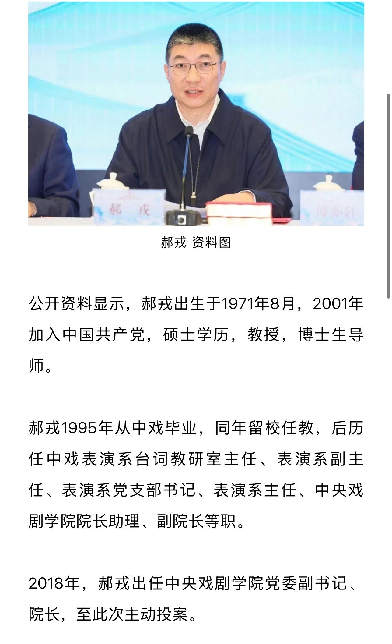 中央戏剧学院院长郝戎,主动投案这位院长,从中戏读书开始,就再也没离开过中戏,直到当了院长,直到投案自首