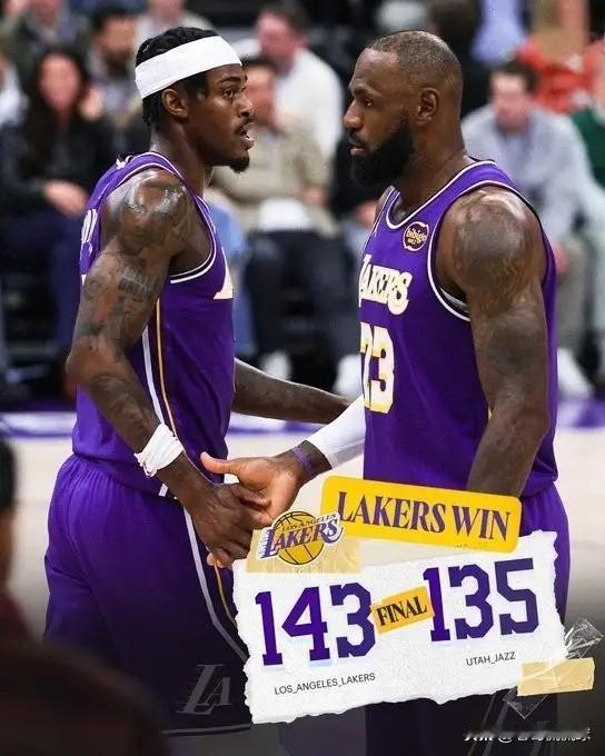 湖人官方真是太懂事了!今天湖人在客场以143:135力克爵士,在比赛结束以后,湖人官方第一时间更新社媒晒出了一张赢球海报,以此来庆祝球队的赢球。让人感到特别欣喜的是,本场比赛发挥出色的詹姆斯和范德比尔特成为了赢球海报的封面人物。 有一说一,以詹姆斯和范德比尔特在本场比赛中的表现来看,他们完全配得上这份殊荣,他们在攻防两端都为球队提供了非常大的帮助。