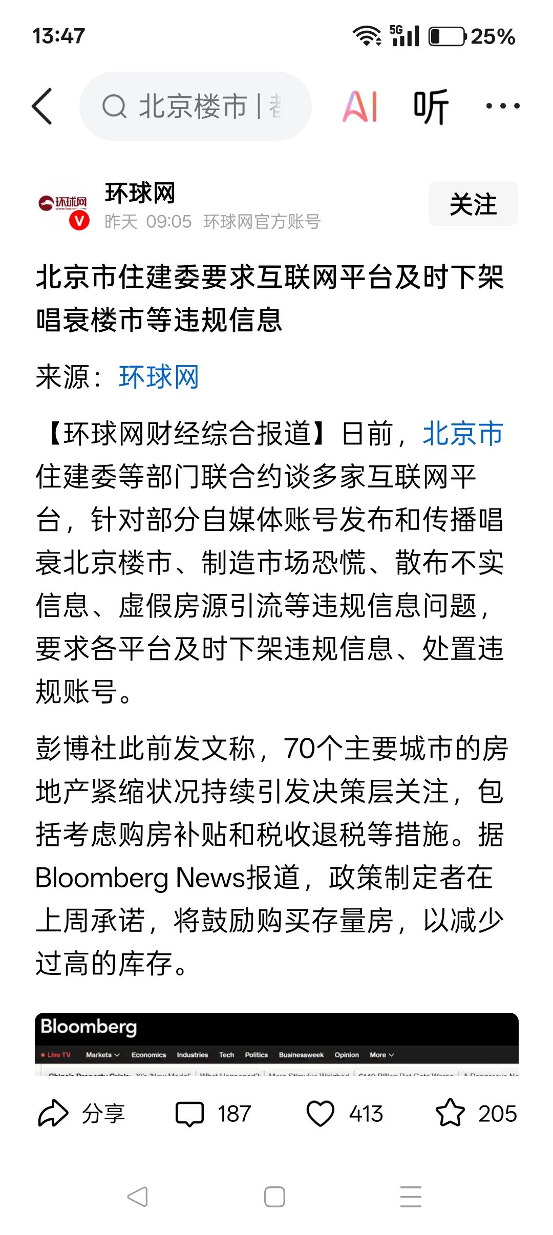 楼市是被唱衰的吗? 12月5日,北京市住建委联合市委网信办、市公安局等部门,联合约谈抖音、小红书、贝壳、58同城、链家等多家平台,直指部分自媒体发布“唱衰楼市、制造恐慌、散布不实信息、虚假房源引流”等违规内容,要求平台自查整改、处置违规账号并建立常态化内审机制。 截至12月12日,各平台已清理1.7万余条违规信息,处置2300余个违规账号/直播间,下架不合规房源480余条。 楼市是被媒体唱衰的吗?当然不是: 截至2025年11月,国家统计局及城市司首席统计师王中华解读数据显示,70个大中城市房价呈现阶段性变化特征,9月各线商品住宅价格环比均降、同比降幅收窄,10月各线商品住宅价格环比、同比均下降,11月商品住宅价格环比总体下降、同比降幅扩大。 反过来说,如果媒体在目前这情况下成天宣传房价跌,是不是就是正确的呢?难道高房价就不影响购房群众的利益了吗? 既然房子是商品,价格涨跌都是正常现象,这是市场行为。没有必要也不应该上纲上线,行政手段需要尊重市场经济规律。 再者房价目前本来就在跌,这是客观事实,也不是由某些人某些部门的主观意志为逆转的。房价跌是多方面因素导致的。 没有哪个国家的房价永远稳定或者说永远上涨。强为逆行,只能是闹笑话。 不止北京,还有其他城市也纷纷出手整治“唱衰楼市”的言论(可以唱涨)。其目的不外乎是害怕房价跌造成很多问题——渴望稳住房价。 当然,像房产中介“虚假房源引流”的现象确实存在: 比如,中介人员编造一个房源,先热情洋溢地把房子的种种优点介绍完,然后再说出一个极低的价格(特别诱人),但当想买房的人说要去看房的时候,中介就改口说“已卖”,事实上这个房源并不存在。其目的是引流,发掘出潜客户。 再如,中介推荐一个房源,有人留言说这房子的缺点,点穿已经卖了很久了都没卖掉,预言“不好卖”的时候,中介就谎称“已卖”,以此掩盖房源滞销的事实。 像这样的假信息,对买家卖家的利益都有伤害:买家被忽悠了,拉低卖家的价格,这就扰乱了楼市正常交易。