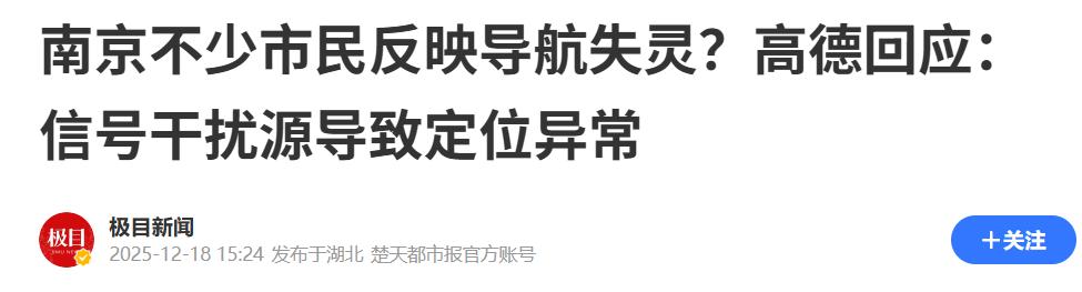 这绝非是小事!2025年12月17日,南京导航集体失灵,软件定位被严重干扰! 近年来随着国家发展越来越快速,人们的出行方式也越来越多样。在此背景下,多款地图软件则受到了极大的欢迎。 其中高德,百度等更是人人皆知的导航系统。多年来,这些地图软件凭借着准确的地点定位,深受大众的喜爱。但就在近日,却集体“翻车”。 2025年12月17日的时候,有多位南京市民突然反映。称自己的导航软件出现了定位偏移,有网友表示自己人在南京的河西,但定位却到了江苏的镇江。在进行查询之后发现,不论是百度还是高德通通行不通。 此事带来的讨论热度持续增大,而据相关工作人员回应,之所以会出现这种情况,是因为部分地区存在信号干扰源,导致了定位异常。在这起导航定位异常的事件中,多个互联网定位APP均受到了影响。 这并不是一件小事,导航系统事关一个国家。导航主要是通过卫星,而卫星的导航定位系统,则是一个国家重要信息基础和战略设施。 我国所拥有的北斗卫星导航系统是继美国的GPS,俄罗斯的GLONASS后第三个成熟的卫星导航系统。从1994年北斗卫星导航系统启动建设,之后的20多年时间里,的卫星导航系统为我国的发展做出了巨大的贡献。 对于我国来说,更是极其重要的空间基础设施。对于此次导航集体失灵事件,并不能当成一件小事去看。 如果战争爆发,相关事件再度突然发生。不敢想拉着导弹的运输车,无人机等各种军用物资,按照错误的导航走,会产生什么后果? 对此,您怎么看? (信息来源:南京不少市民反映导航失灵?高德回应:信号干扰源导致定位异常-极目新闻)
