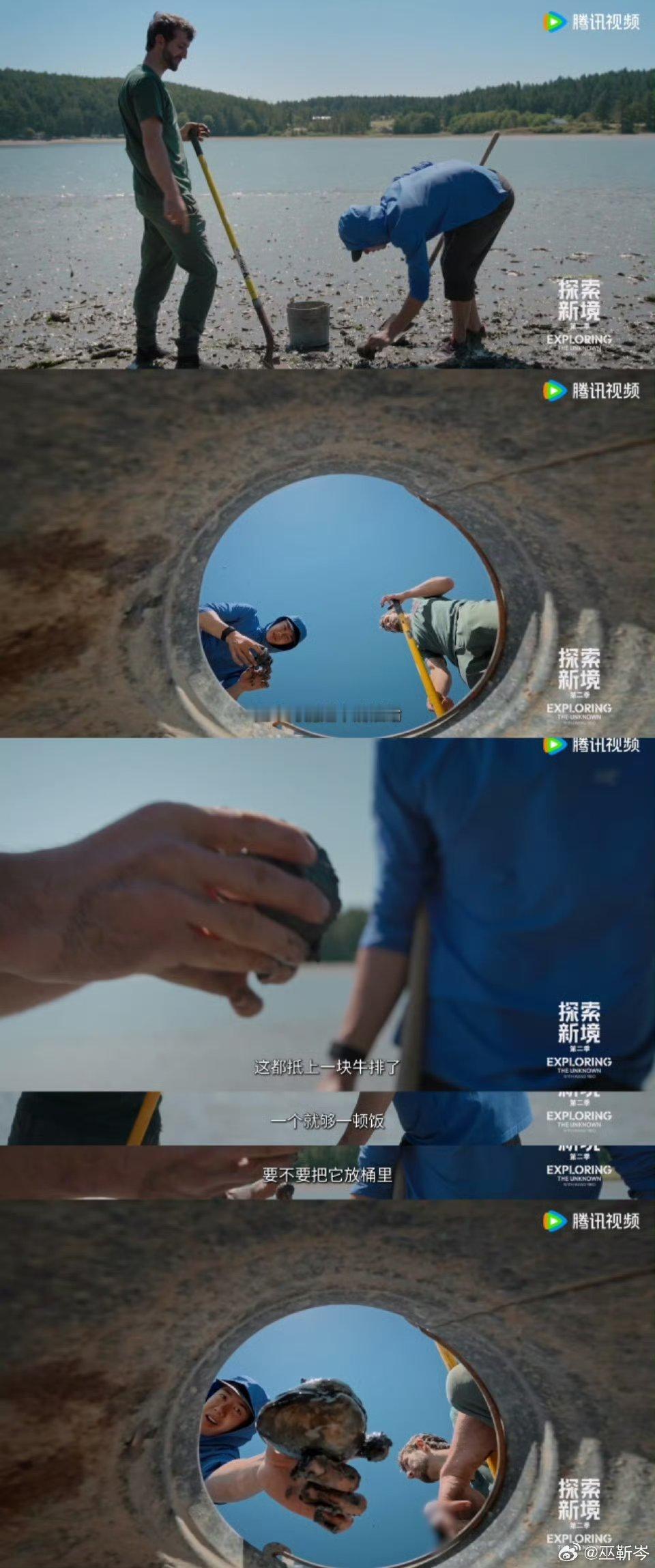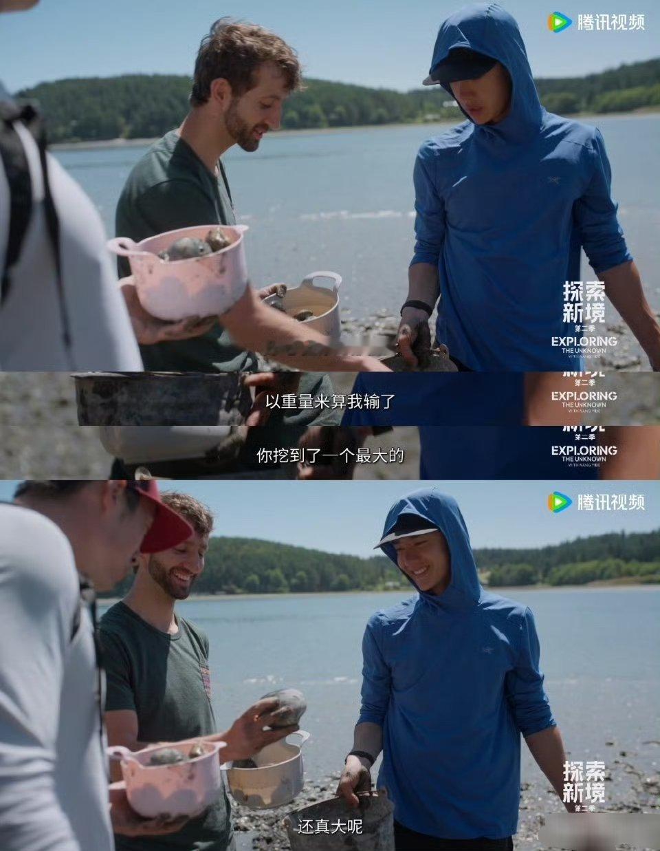 王一博气运之子 王一博这是什么神仙体质。别人还在找的时候,一博已经挖到了超大蛤蜊。同行的里奥当场感叹:“一个就够一顿饭”。上一集还见到了别人十年内能见到两次的座头鲸,钓鱼还钓到超大帝王鲑,这运气真的超牛,王一博气运之子实锤了!下一集还有很多小动物💚王一博