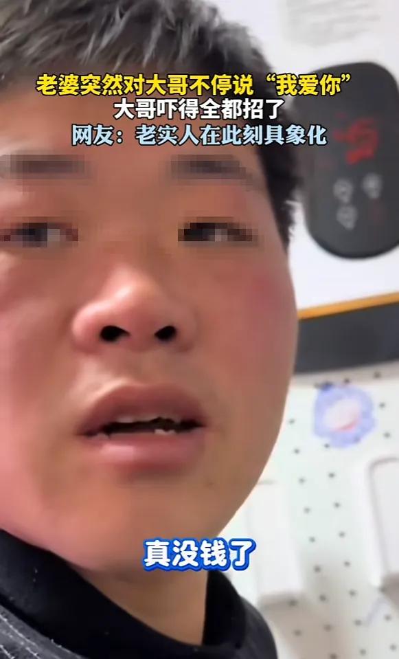 “笑不活了!”12月14日,江苏,一女子在丈夫洗碗时,突然对他说“我爱你”,丈夫听见后一脸惊讶, 女子以为丈夫没听清,又重复了一遍这句话, 没想到丈夫顿了几秒,挤出来一句真没钱了,浑身上下就20块。网友: 这就是老实人! 那天晚上,丈夫系着围裙,正站在水槽边安安稳稳地洗着碗,水声哗哗地响,氛围本来安安静静的。妻子不知道突然哪根筋搭错了,心血来潮想跟丈夫浪漫一下,就悄悄凑到他身后,突然轻声说了一句“我爱你”。 按说这三个字一出口,就算不浪漫回应,也该是温柔的反应吧?可没想到,这位丈夫的反应直接跑偏到了姥姥家。他正在刷盘子的手,听到这话瞬间就僵住了,连水流都忘了关。过了一两秒,才猛地转过头来,一脸的惊恐加懵圈,眼睛瞪得圆圆的,仿佛妻子不是说了句情话,而是突然跟他说“家里欠了几百万”似的。 妻子看着他这副滑稽模样,差点没忍住笑出来,还以为是丈夫没听清,又凑上前去,忍着笑意把“我爱你”又重复了一遍。她本来还期待着这次能得到点正常回应,结果接下来发生的一幕,直接让她笑到蹲在地上起不来。 丈夫听完第二遍,眉头皱得更紧了,脸上的表情从懵圈慢慢变成了紧张,嘴唇动了动,憋了足足好几秒,才红着脸从牙缝里挤出来一句特别务实的话:“真没钱了,浑身上下就剩20块了。” 那语气里带着点委屈,又有点无奈,仿佛在求饶似的。 妻子这下是真忍不住了,笑得直拍大腿,赶紧跟他解释:“我啥也不要,就是突然想跟你说句我爱你,表达一下感情而已!” 可她越解释,丈夫反而越不相信,眼神里的警惕丝毫没减。在他的认知里,妻子平时很少说这种肉麻的话,突然这么温柔,肯定没好事,八成是想买什么东西了,或者是有别的“预算申请”。 哪怕妻子再三强调“真不要钱,就是单纯想表白”,这哥们儿还是不松口,一会儿试探着问:“那是想过两个月买啥大件?” 一会儿又叹着气说:“要是实在不行,那我这最后20块私房钱也给你,你别再这么吓我了。” 那副“任人宰割”又无可奈何的样子,把妻子逗得不行。 这段视频发到网上后,评论区直接炸开了锅,网友们都笑疯了。有网友说:“这就是已婚男士的条件反射吧?听到情话第一反应不是心动,是钱包要空了!” 还有不少男网友现身说法,说自己家也是这样,只要老婆突然温柔夸自己,下一句必是“想买啥直说”,简直是刻在DNA里的本能。 最扎心又最真实的评论,就是那句“这就是老实人啊!” 大家都看出来了,这位丈夫不是不解风情,而是太实在了。他之所以会有这样的反应,不是不爱妻子,而是被生活磨得太务实了。中年夫妻的日子,大多都是围着柴米油盐、水电费账单、孩子的补习班费用转,浪漫和情话早就被这些琐碎挤到了角落。 久而久之,在他的大脑里,“突然的温柔”和“花钱”就划上了等号。可就算他误以为妻子是要花钱,第一反应也不是撒谎说没钱,而是老老实实地坦白自己“就剩20块”,甚至愿意把这最后一点私房钱也交出来。这份笨拙的实在,就是老实人最可爱的地方。 其实仔细想想,这看似搞笑的乌龙背后,藏着的是最朴素的深情。如果他是个油嘴滑舌的人,可能会立刻顺着说“我也爱你”,场面虽然浪漫,却少了这份真实的动人。而这位丈夫的慌张和坦白,恰恰证明了他对妻子的毫无保留,哪怕自己没多少钱,也愿意满足妻子的需求。 现在很多夫妻都是这样,忙着一起应对生活的压力,回到家就成了并肩作战的“队友”,习惯了用务实的方式相处,却忘了偶尔说句情话、表达一下感情。就像视频里的这对夫妻,妻子突然的表白,其实就是想给平淡的日子加点点甜,而丈夫的“跑偏”回应,反而让这份甜多了几分烟火气。 后来妻子说,那天最后她笑了半天,跟丈夫解释清楚后,丈夫还有点不好意思地挠了挠头。虽然这场“表白”变成了“要钱”的乌龙,但两个人的感情反而更近了一步。网友们也说,比起那些刻意的浪漫,这种接地气的小乌龙才是婚姻最真实的样子。 那个站在水槽边,听到“我爱你”就慌得不行,只能掏出20块钱的男人,可能不懂什么花言巧语,却在用自己最实在的方式守护着这个家。这场让人笑不活的小插曲,最后变成了夫妻俩心里暖暖的小回忆。毕竟,婚姻里最珍贵的,从来都不是华丽的情话,而是这份哪怕误解,也愿意毫无保留的信任啊。 信息来源:《12月14日,江苏。老婆突然对大哥不停说我爱你,大哥吓得全都招了。》