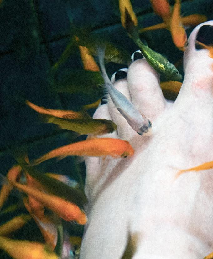 温泉鱼有多恐怖?吃脚皮只是在麻痹你,整条鱼进去只剩骨架。 不少人第一次做鱼疗时,都会被鱼缸里密密麻麻的小鱼逗笑。 它们围着脚踝钻来钻去,啃得脚背痒痒的,商家说这是“天然去角质”,连明星都在社交平台晒过体验视频。 可很少有人知道,这些看似温顺的小鱼,骨子里藏着不为人知的另一面。 现在市面上常见的温泉鱼,大多是星子鱼或淡红墨头鱼。 原生环境里,它们靠吃浮游生物和藻类过活。 被人工驯化后,商家会刻意控制喂食,让它们饿着肚子等客人。 这些小鱼的嘴巴边缘长着一圈角质化的唇瓣,像微型吸盘,啃食死皮时其实是在用吸盘撕扯。 你以为的“按摩”,不过是它们为了生存的本能进食。 2017年泰国芭提雅一家水疗中心出过事。 有位客人好奇把手臂伸进大鱼缸,想试试“全身鱼疗”。 没过十分钟,他疼得叫出声,鱼群聚集在他的手肘和手腕处,那里皮肤较薄,已经被啃出了细密的血点。 后来医生检查,说他的皮肤屏障被破坏,细菌顺着伤口感染,肿了整整一周才消。 国内也有类似投诉。 上海消保委2021年抽检过20家鱼疗店,13家的水质没达标。 有的池子里能看到鱼的排泄物,有的甚至检测出耐甲氧西林葡萄球菌,这种细菌对普通抗生素耐药,一旦感染很难治疗。 商家嘴上说“每天换水”,背地里为了省成本,可能一周才换一次。 皮肤科医生其实早提醒过,健康的皮肤角质层是天然屏障,被小鱼反复啃食后,就像剥掉了一层保护壳。 北京友谊医院接诊过鱼疗后得接触性皮炎的患者,就是因为鱼的唾液或分泌物刺激了新生皮肤。 本来想美美的,结果反而要涂药膏,实在不值当。 我觉得,与其指望小鱼“美容”,不如老老实实涂磨砂膏,至少成分可控,风险看得见。 更有意思的是商家的宣传话术。 你去店里看海报,总能看到“量子能量修复”“生物电疗排毒”这类词。 查了《广告法》才知道,这些说法根本没有科学依据,纯属夸大宣传。 去年市场监管总局通报的虚假宣传案例里,就有鱼疗店因为说“包治脚气”被罚款,可照样有消费者信以为真。 那些在鱼缸里啃食脚皮的小鱼,从来不是什么“美容师”。 它们只是在饥饿中寻找食物,而我们的皮肤,成了商家盈利的道具。 下次再路过鱼疗店,不妨想想泰国那位客人红肿的手臂,还有检测报告里超标的细菌。 健康从来不是靠猎奇的“自然疗法”换来的,理性和科学,才是最可靠的防护盾。