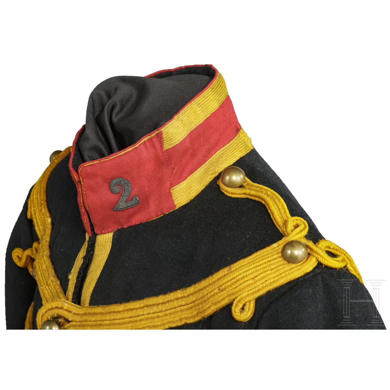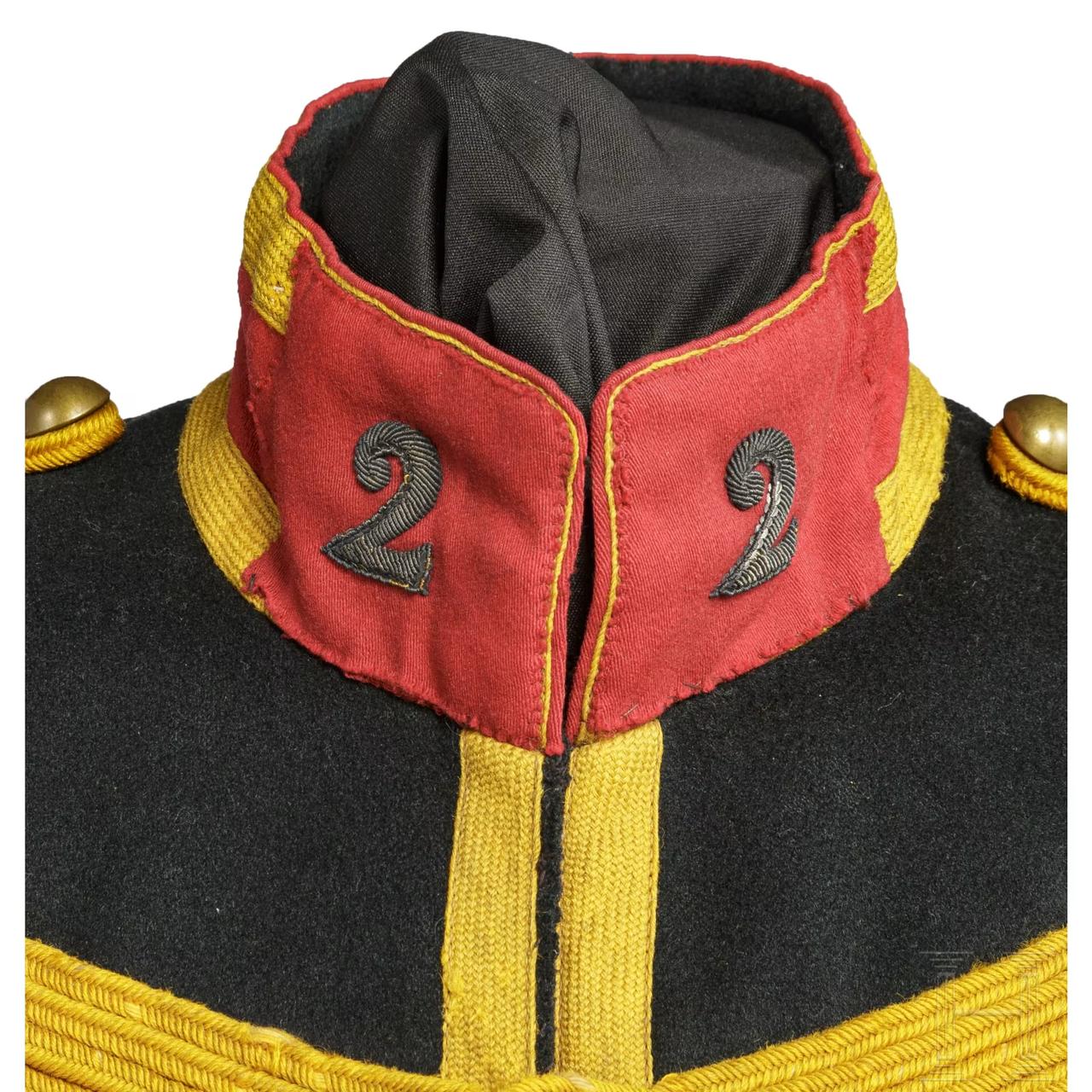 1863 式 比利时第二向导团士兵束腰军服,约 1870-1880 年 源于东欧骑兵制服,特指无领束腰短军服,常见于 19 世纪欧洲骑兵、步兵部队,版型紧身,腰部可收紧,便于行军作战。 比利时第二向导团,该部队是 19 世纪比利时陆军的精锐轻骑兵单位,负责侦察、护卫等任务。