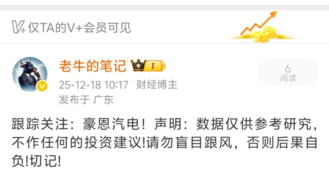 12月18日早上跟踪关注的:豪恩汽电 今天也迎来了大-涨!