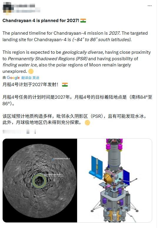 印度这次又要赢了? 印度公布了月船4号的最新坐标,就在南纬84度至86度,离月球南极点愈发接近 三哥这回口气非常大,宣称这次采样要带回最高5公斤月壤 要知道,咱们的嫦娥五号也就带回了1700多克,嫦娥六号在月背挖了1900多克,都没超过2公斤。 印度这回一开口就要搞5公斤,这是要封神呐 咱说句实在话,印度这回确实是攒了一股劲儿。 2025年美国的雅典娜着陆器,原本计划抢先去南极找水,结果落地时摔了个大跟头,直接掉进了深坑了。 然后咱们的嫦娥七号计划2026年去。 印度紧接着也定在2027年发射,很显然就是想要跟中美一较高下。 但说归说,这5公斤月壤真那么好拿吗? 咱他的方案,因为自家火箭力气不够大,印度打算连发两枚LVM3火箭,在太空里拼积木完成任务。 而且他们还得拉上日本合作月球车,测控靠欧美支援。 关键的是,航天这事儿,成功从来不是靠嗓门大。咱们之所以稳,是靠一个脚印一个坑踩出来的。 印度虽然月船三号成了,但能不能连胜,谁也说不准。 这5公斤月壤到底是大跃进还是真本事,咱们2027年见分晓