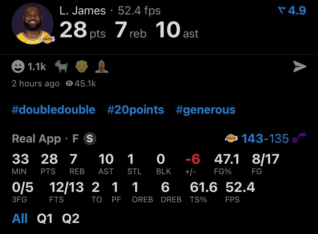 湖人战胜爵士惊天逆转!湖人143-135客场擒爵士豪取两连胜,本赛季实现对对手的三杀!这场飙分大战全程高能,湖人一度落后22分陷入绝境,末节突然发力打出强势攻势完成翻盘。东契奇状态炸穿天花板,28投14中轰下45分11篮板14助攻5抢断的大号三双,攻防两端都成了无解杀器。老詹同样稳定输出28分7篮板10助攻,关键时刻的扣篮和罚球牢牢稳住局势,斯玛特17分+关键三分、海斯16分的吃饼表现也堪称完美。从首节32-41落后到末节净胜12分,湖人用防守蜕变和巨星统治力诠释了何为韧性。爵士乔治空砍34分8助攻,终究没能挡住湖人双星的锋芒!19胜7负的西部劲旅,这状态太顶了🔥