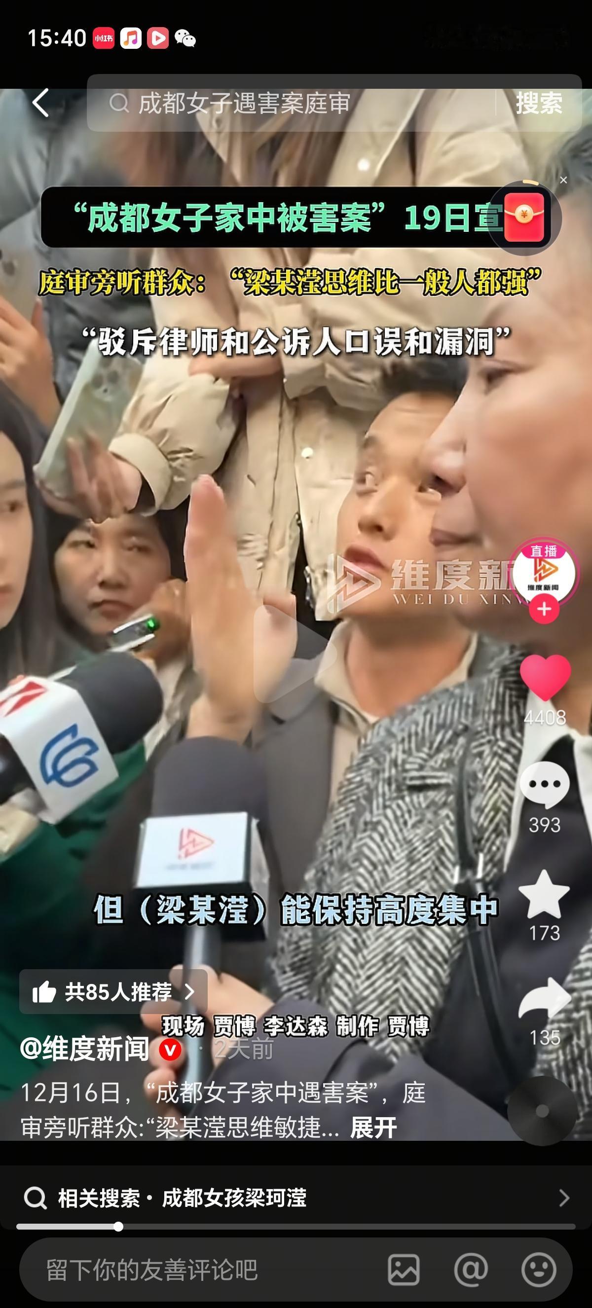 我一直有个疑问,杀害王紫雅的梁某某为啥不在精神病院里接受治疗,反而能逻辑清晰的给自己证明正当防卫。孔律师表明梁某某一直高度集中,她自己的律师问她是不是捅了梁紫雅10刀,她能马上反驳律师,提醒对方是自己的律师,表明自己是“刺”不是“捅”,两者性质不一样。 臧律师表示梁某某这回请来的两个人比她上回开除的那个有水平,一直在证明梁某某是正当防卫和有自首情节。臧律师对此是不认可的。 臧律师对梁某某的精神鉴定也不认可,因为时间只有2.5个小时,还没有达到住院半个月的要求。梁某某在持续半个小时左右说明事情经过的时候,法官还问她鞋多大码来着,她回答的挺准确。 旁听律师表示梁某某为了证明自己没有精神病,表示自己可以一个人去欧洲旅行、去深圳打工、还想自己创业。紫雅案 梁某某就是这样的一个矛盾体,干着不正常的事情。说着看似正常又不正常的话。
