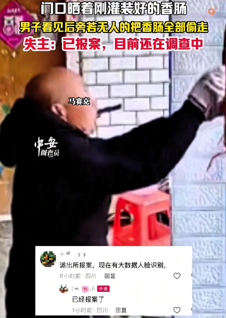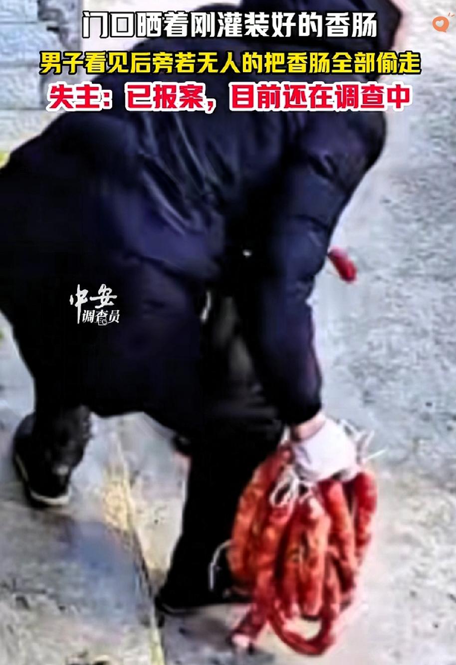 成都大姐刚灌好的香肠晾门口,不到24小时就被人整杆偷走,监控里那男的叼着烟、慢悠悠卸杆子,比收自家东西还理直气壮! 这哪是偷香肠,分明是抢别人的心血和年味啊! 灌香肠有多累谁不知道,挑肉、拌料、灌肠、扎眼,腰都累酸了才盼到晾晒,结果全成了小偷的“加餐”。 更可气的是这种漠视——他偷的不只是几斤肉,是邻里间不设防的信任,是社区里暖乎乎的烟火气。 现在好在小偷已经被警方抓到,但这事儿提醒我们,年关虽暖,人心可不能无防。 别让“顺手牵羊”毁了过年的好心情,也别让少数人的贪念,凉了大家对彼此的善意。 你家过年会晾香肠腊肉吗? 都是怎么防偷的?来评论区分享下实用妙招!