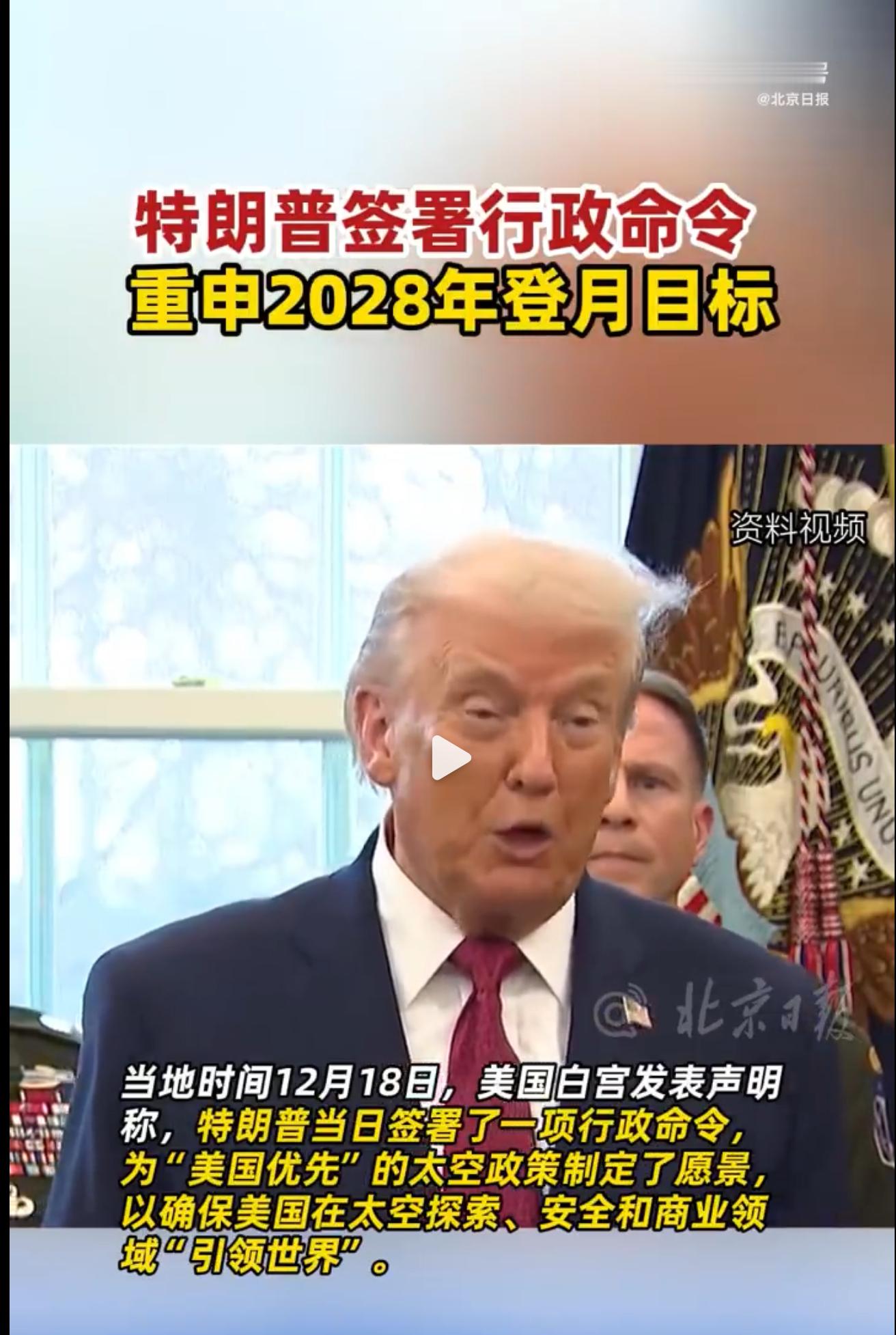 这下,留给美国的时间真的不多了!当地时间12月18日,美国白宫发表声明称,特朗普当日签署了一项行政命令。要求美国人到2028年重返月球,并在2030年前建立永久月球前哨站的初始设施,指示在月球和轨道上部署核反应堆,以提供可持续能源支持长期驻留。为刺激私营航天发展,命令提出在2030年前用商业空间站替代国际空间站,并指示联邦各部门和机构共同执行该命令。这份命令,被视为特朗普第二任期内首个重大太空政策举措,旨在重振美国在太空领域的领导地位。美国自从上世纪六七十年代登月过后,已经超过50年没有去过月球了。以至于,很多人认为美国登月是假的。为了彰显美国太空霸权,2019年,美国启动“阿尔忒弥斯”重返月球任务,计划在2024年之前再次把宇航员送上月球。然而,近年来,美国太空计划频频遇阻。作为“阿尔忒弥斯”的核心载具SLS重型运载火箭,虽然在2022年首次发射成功,但后续任务仍面临预算超支、技术可靠性等挑战。配套的“猎户座”飞船虽完成无人绕月测试,但载人舱生命维持系统、热防护盾等关键部件仍存在可靠性隐患。据参与测试的工程师透露,当前系统的水回收效率仅为75%,远低于国际空间站95%的水平,这意味着每次载人任务都需要额外携带大量补给物资。原计划2024年进行的“阿尔忒弥斯II”(载人绕月)已推迟到2026年。最关键的“阿尔忒弥斯III”(载人登月)则从2025年一路滑向2027年中后期。甚至有专家警告,“若资金和技术问题无法解决,可能延至2028年之后”。别说再次载人登月了,就是发射探测器到月球正面,老美现在都费老鼻子劲了。如今特朗普直接跳过现有计划,要求2028年必须完成载人登月,无异于在“烂尾工程”上强行加盖“竣工章”。讽刺的是,命令中提出的“2030年前部署月球核反应堆”,更是吹到没边了。根据白宫科技政策办公室披露的技术路线图,该反应堆将采用千瓦级微型裂变堆设计,旨在为月球基地提供持续电力供应。但NASA马歇尔太空飞行中心公开承认:“当前方案仅停留在概念设计阶段,距离工程样机验证至少需要10年研发周期。”这种“先定目标再填技术”的逻辑,与当年“星球大战计划”,美国用虚假技术威慑苏联的策略如出一辙。所以,老美说的话,大家听听就行。再者,特朗普2030年肯定不在位了,之后谁来还不知道。更何况,美国当年究竟有没有登月,目前还存在一定的疑点。目前来说,地球上只有中国有能力去证伪了。中国的载人登月计划已经确定了,首先在2028年左右,会在月球南极建立中国的科研站,然后2030年前后实现载人登月。目前,相关工作正在稳步进行中。在关键技术攻关方面,中国已取得多项突破性进展。比如,2023年12月发射的嫦娥七号探测器,携带了全球首台月壤原位制氧实验装置,成功在月面环境下产出氧气和氢气。这项技术一旦成熟,可将月球资源利用率提升30%,大幅降低未来月球基地的补给依赖。此外,中国自主研发的新型载人飞船“梦舟”已完成多次试验,其可重复使用设计与模块化货舱配置,较传统飞船减重20%,为长期驻留月球奠定基础。咱把美帝的底裤扒了个精光,它必将恼羞成怒、爆跳骂街!面对中国航天稳扎稳打、步步为营的攻势,美国发现自己无法在技术路径和预算效率上取胜。 剩下的便只有通过“画大饼”和“口嗨”来维持霸权余温。中美载人登月竞赛,谁能率先成功,让我们拭目以待!特朗普称美国将在月球部署核反应堆特朗普下令要求美国人2028年登月 烽火问鼎计划