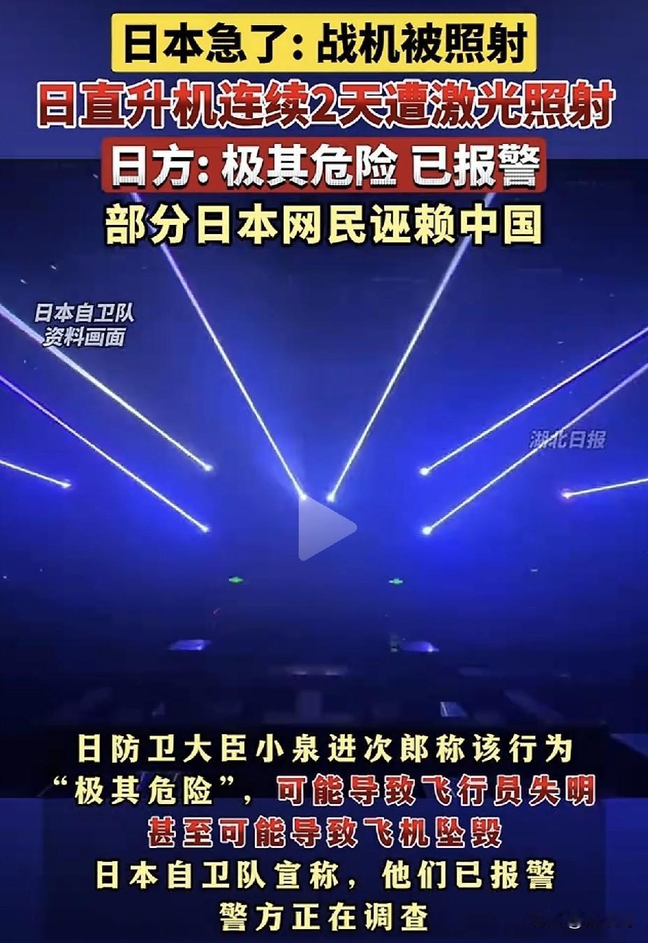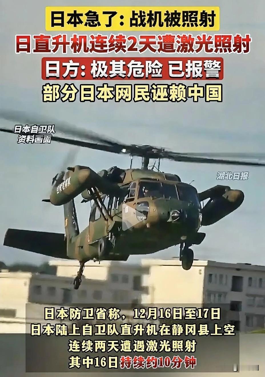 日本自卫队急了! 直升机连续2天被激光“点名”,谁在警告? 1️⃣ 第一天警告:自卫队直升机突遭激光照射,机组人员声称“感到危险”。 2️⃣第二天照旧:次日同一空域,激光再次精准锁定,明确传递“不欢迎”信号。 3️⃣日方跳脚:防卫省紧急炒作“安全问题”,却绝口不提自家飞机在敏感空域抵近活动的真实意图。 看看自卫队的“双标”剧本: ✅在南海、台海,动辄打着“航行自由”旗号,远赴他国门口搞抵近侦察。 ✅一到自家周边被反制,立刻扮成“受害者”,大肆渲染“遭遇威胁”。 ✅这种“我能撩你,你不能瞪我”的强盗逻辑,正在东亚彻底破产。 激光不是武器,是态度。 连续两天不是意外,是精准的警示。 这背后是海空维权手段的升级: 以前是伴飞、喊话,现在用非接触、高精度、强威慑的光学手段划出红线。 你越线,我就照。你来几次,我照几次。 最致命的是: 这标志着区域安全博弈进入“秒级响应”时代。 你的每一次挑衅,都会换来一道即刻、可见、无声却充满压迫感的警告光束。 成本极低,效果极强。 以前,日本跟着美国炒作“激光危害”。 现在,激光成了照出他们航行自由“双标”真相的探照灯。 点赞看自卫队还敢不敢再来? 关注看下一次会是什么反制手段? 评论说说:对这种“照妖镜”式的警告,你支持吗?