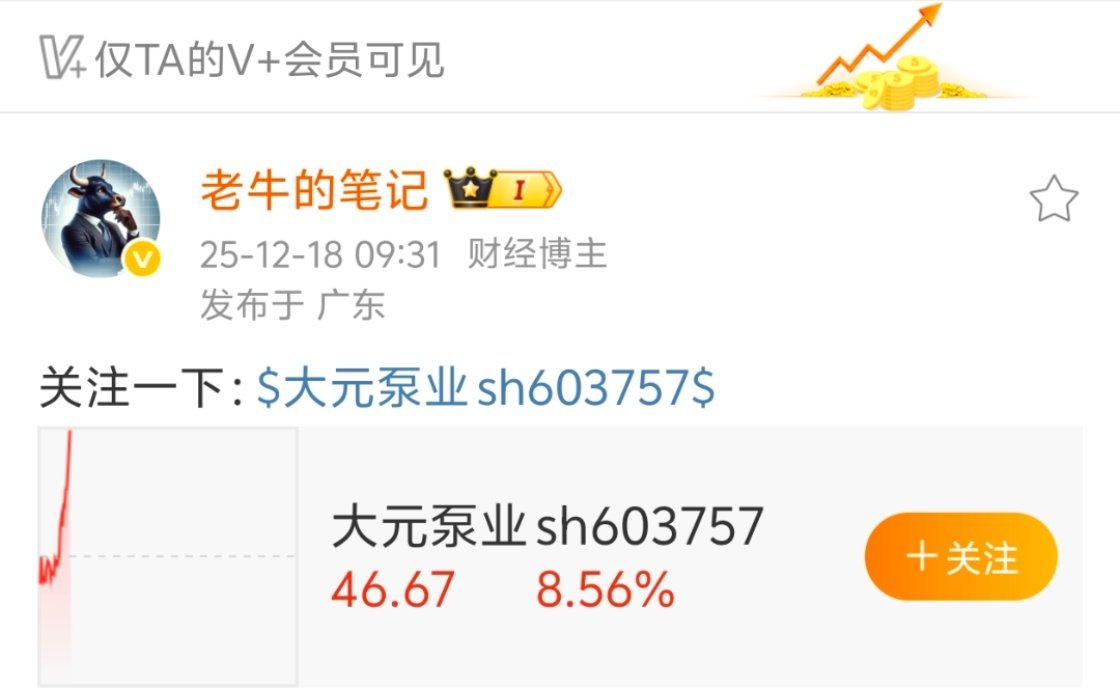 掌声鼓励!12月18日早盘跟踪关注:大元泵业 涨-停-了!