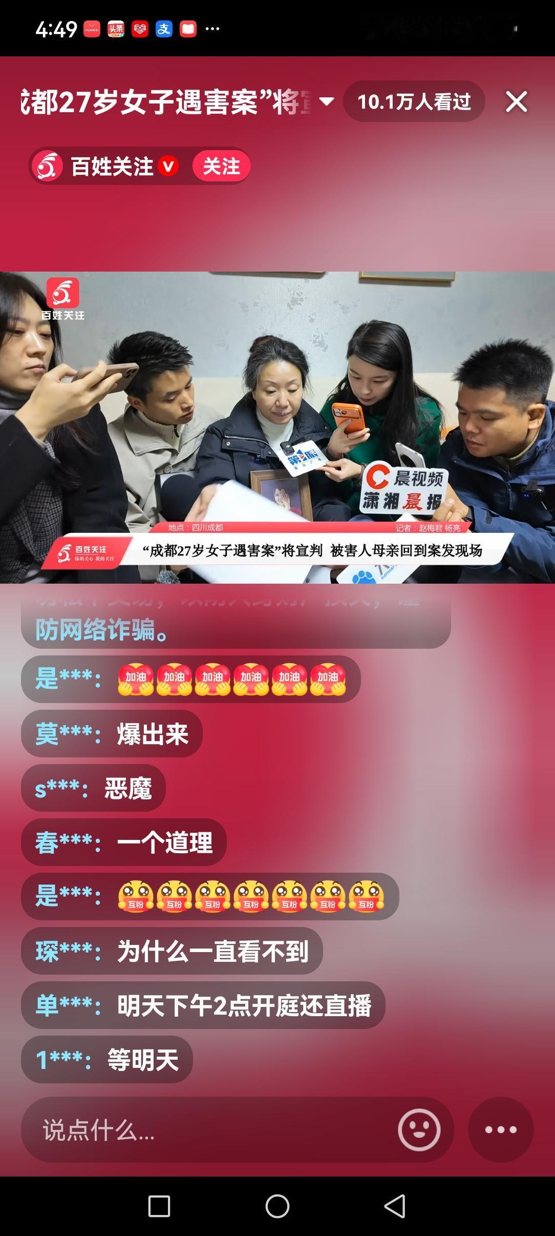 成都紫雅的案件明天一审就要宣判了! 紫雅妈妈说,哪怕我女儿残疾了,不能自理了,变成植物人也好,我都会放你一马,不会非要判你S刑的! 她的这段话听得让人泪流满面!也理解了紫雅妈妈的不易。 原来紫雅妈妈是个单亲妈妈,她的丈夫早就病逝了,是她一个人含辛茹苦把女儿拉扯大,培养成才的。 女儿就是她的全部,也是她的精神寄托。 女儿学业有成,让她也看到了曙光,觉得自己终于熬出头了。没有想到这一切就这么毁灭! 紫雅妈妈穿着女儿给她买的衣服,泪流满面。床头柜的保温杯里还放着她女儿喝过的水,她一直舍不得倒掉。 她说,自己现在完全变了一个人,以前很注重穿衣打扮。现在已经完全顾不上,连笑一下都觉得愧对自己的孩子。和朋友相聚时,又不得不强颜欢笑,觉得自己活得好累。 网友能些不好的留言,让她感到很受伤。一条条念给记者听,她说自己已经报了叔叔,要用法律的手段惩罚这些网暴者。 法律是公平公正的,期待明天的宣判结果!