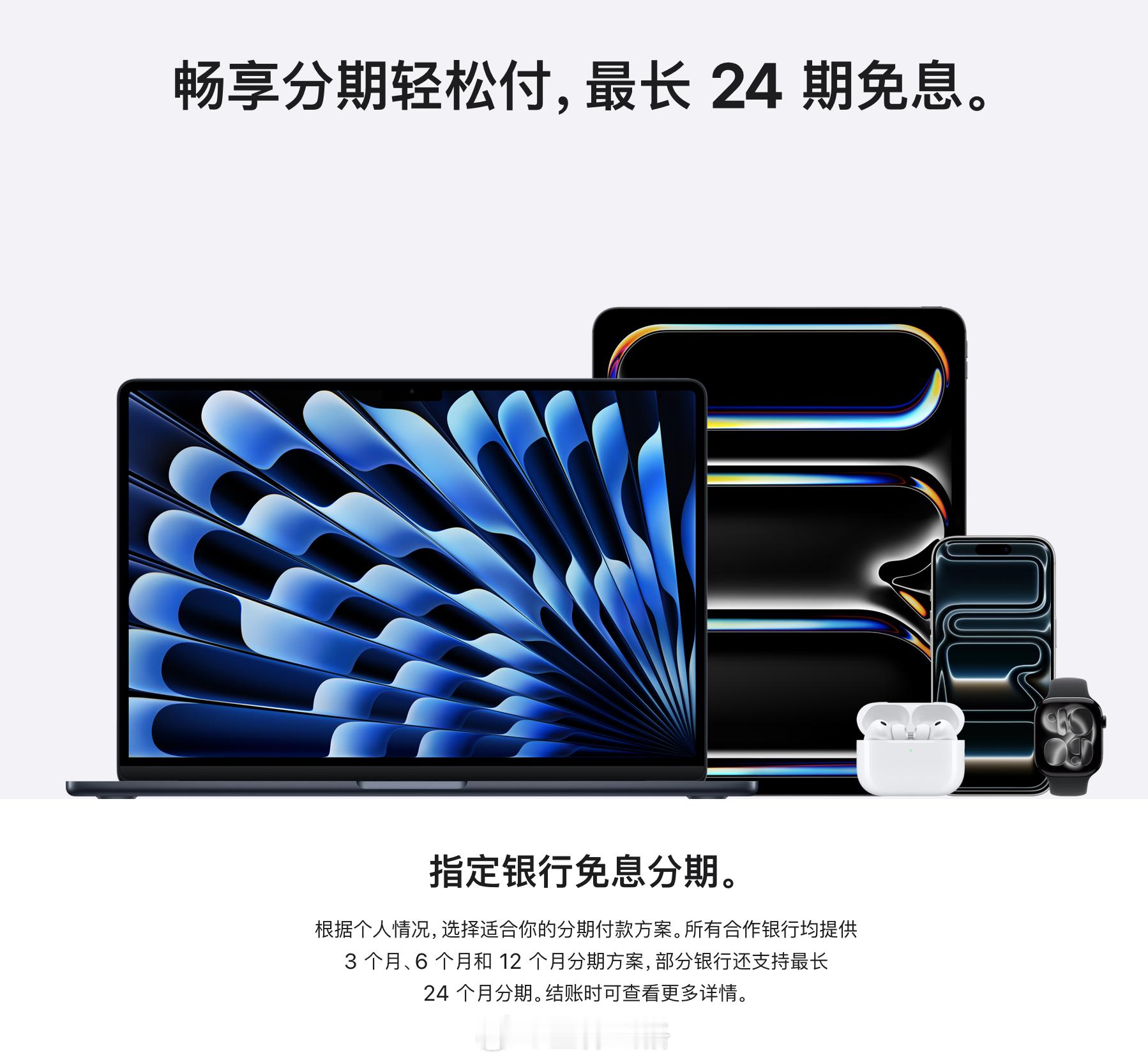 好消息!苹果官网分期免息支持的银行多了好几倍,之前只能招商银行建设银行工商银行等少数几个,现在12/24 分期免息新增加了十几家银行,比如光大/民生/浦发等。直接前往苹果官网或者 Apple Store App下单即可,另外线下的 Apple Store 零售店应该也支持同步支持这些最新的银行。
