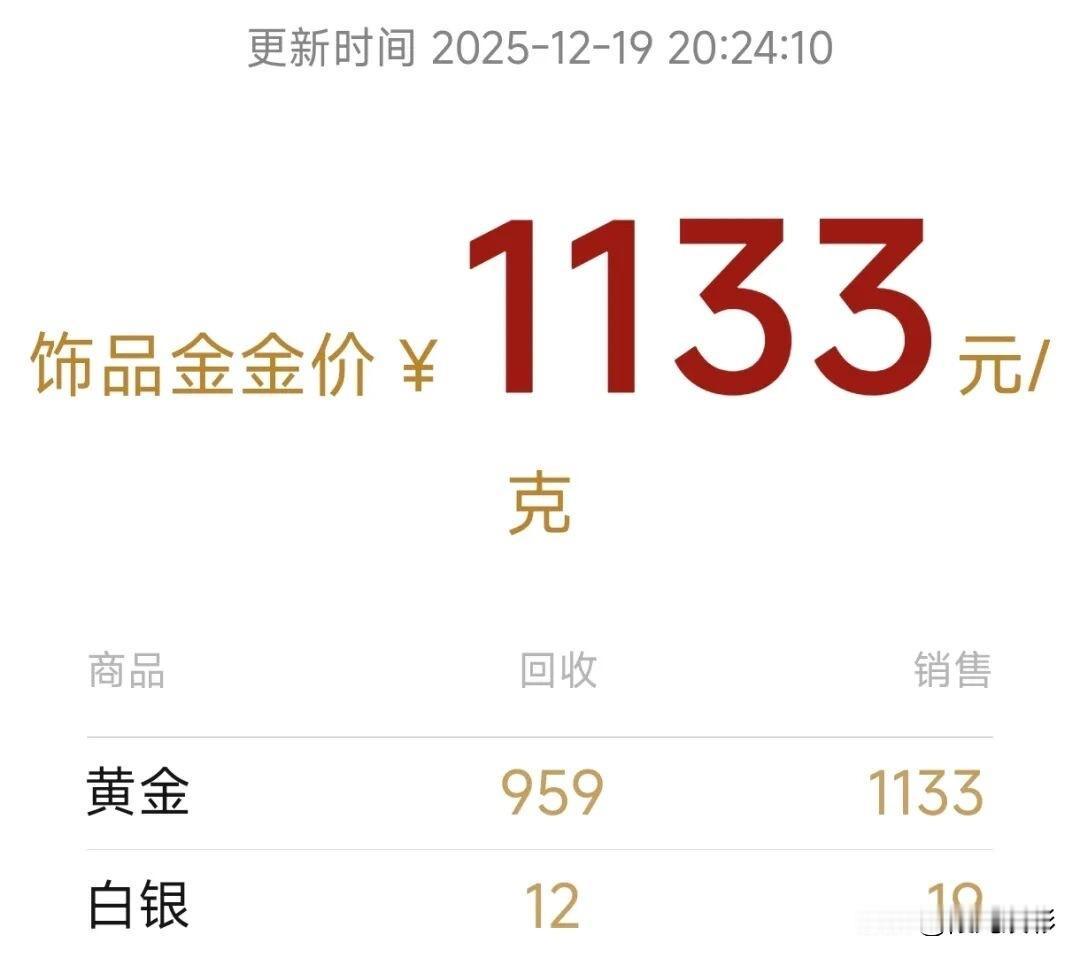 晚间消息 水贝黄金批发价格上涨了 黄金首饰价格1133元/克, 黄金回收价格959元/克, 白银回收价格12元/克。 同比与上午黄金首饰价格上涨了6元,黄金回收价格上涨了2元,白银回收价格还是保持不变。 所有信息都只是提供参考价值! 购买黄金有风险,请大家保持理性购买! 黄金售卖价格 黄金价 黄金白银价格 黄金回收价攀升 黄金一克720 黄金价格680 黄金回收价
