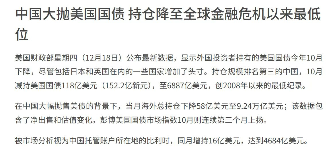 中国美债持仓创2008年以来新低 中国10月减持美国国债118亿美元,持有规模降至6887亿美元,创2008年以来的最低纪录。日本作为美国国债最大的海外持有人,其持仓10月增加107亿美元,达到1.2万亿美元,触2022年7月以来最高水平。至于持有规模位居第二的英国,持仓增加了132亿美元,达到8779亿美元。当月海外总持仓下降58亿美元,至9.24万亿美元。今年以来,对海外抛售的担忧令美国财政部的持仓数据受到格外关注。不过,美国财长贝森特一直都对所谓“卖出美国”说法予以反驳。