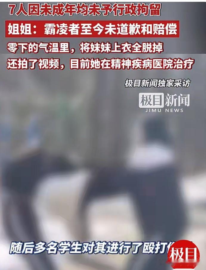看了这新闻,心里像被冰锥扎了似的。零下的公园里,16岁的姑娘被一群人围着打,衣服都被扒了,那视频还被传得满天飞。可到头来,7个动手的,就因为“未成年”三个字,全免了行政拘留。处罚书上“不执行”那几个字冷冰冰的,再看看医院里姑娘“焦虑抑郁”的诊断单,这对比,扎得人眼睛疼。 都说法律要保护未成年人,可这保护要是成了施暴者的“免罪符”,那不就成了给受害者心上再捅一刀?施暴的代价太轻了,轻到他们可能转身就忘,可被打的姑娘呢?怕是一辈子都得带着这道疤过日子。 别以为抑郁症就是心情不好,那是实实在在的精神创伤,像在心里生了场烂疮,好起来难着呢。现在光说“年纪小罚不了”有啥用?更该想想怎么让那些施暴的真明白自己错在哪儿,也得给这姑娘靠谱的心理帮扶,不是一时半会儿,是长长久久的那种。 惩罚的方式或许能按年龄改改,但该教的道理、该补的社会课,一点都不能少。不然,这样的疼,还会落到别的孩子身上。 你说,这道坎,这姑娘得用多久才能迈过去?