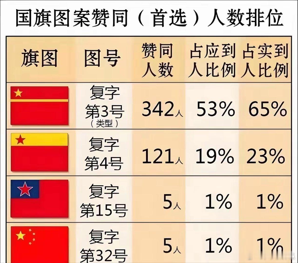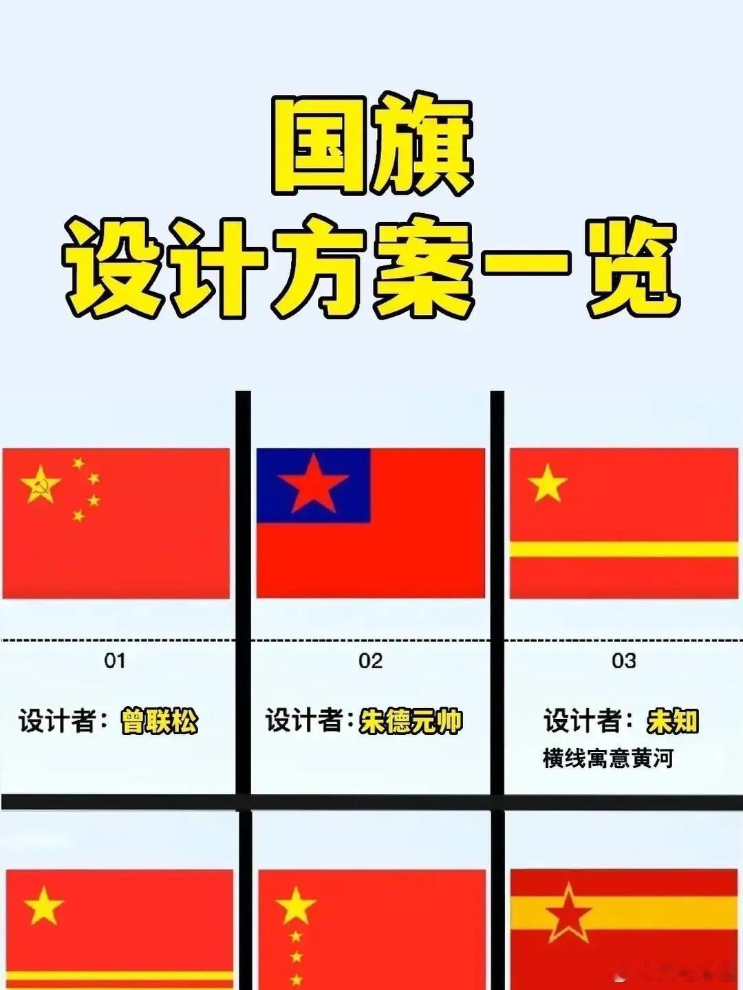 新中国成立时,国旗方案评选1949年新中国成立前夕,新政协会议筹备会征集国旗的设计方案。征集活动反响热烈,短短半个月内便收到近500件设计稿,投稿者包括社会各界人士,甚至包括海外华人。根据投票结果:3号方案,342人支持,支持率最高。五星代表党,黄线代表黄河,背景为红色。4号方案,121人支持。五星代表党,上面黄色,下面红色。15号方案,5人支持,朱老总设计。32号方案,5人支持,五星红旗方案。毛泽东主席综合考虑后,采纳了张治中等人的建议,选定曾联松设计的五星红旗作为国旗。国旗方案由红色旗面和五颗黄色五角星组成,一颗大星居左,四颗小星环列右侧,象征中国共产党领导下的全国人民大团结。这一设计简洁庄重,体现了新中国的政治特征和民族精神。
