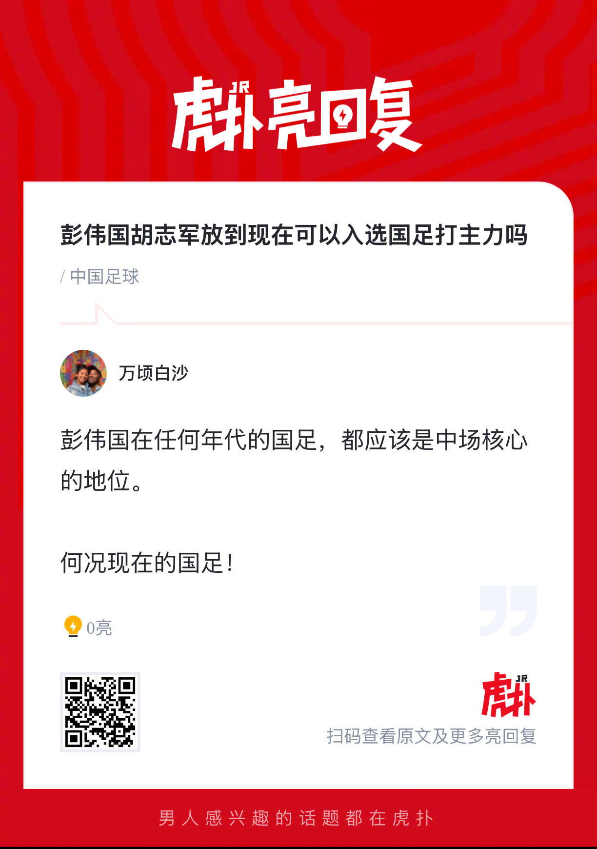 彭伟国、胡志军放到现在,可以入选国足打主力吗?