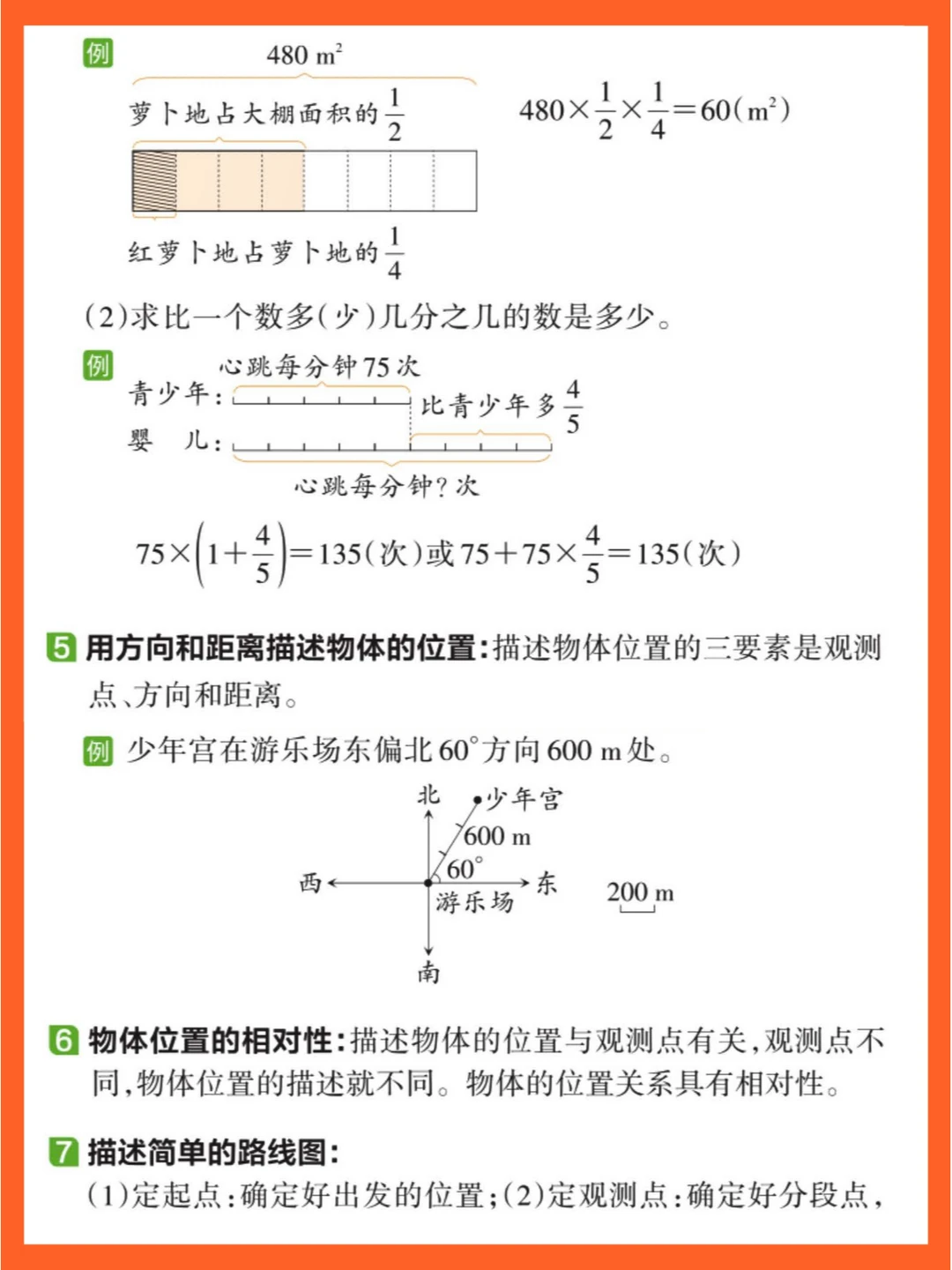 [一R]位置与方向(二):用方向(东偏南等)和距离确定物体位置,明确方向相对性,能绘制路线图。