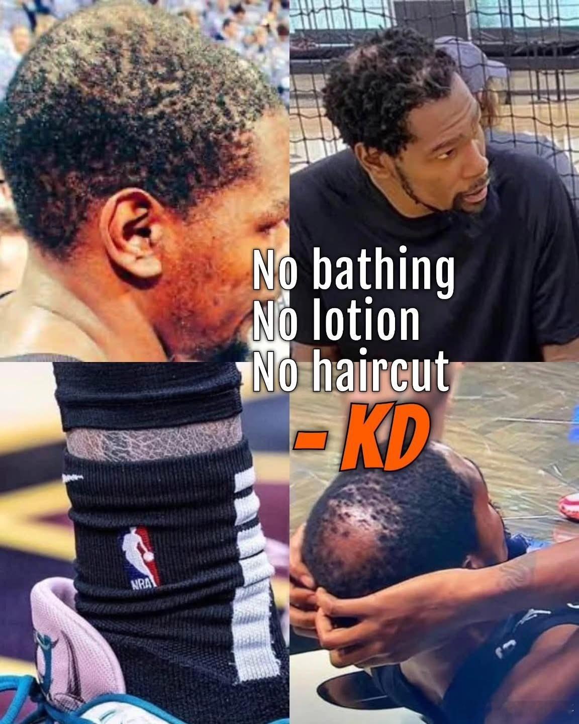 NBA 现在全网都知道,杜兰特,不洗澡,不涂润肤露,不剪头发