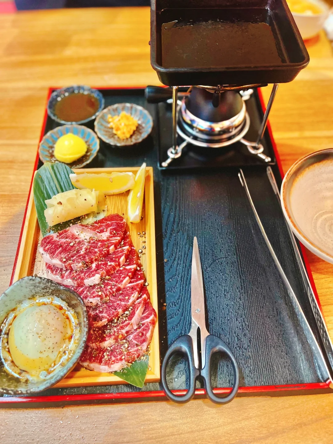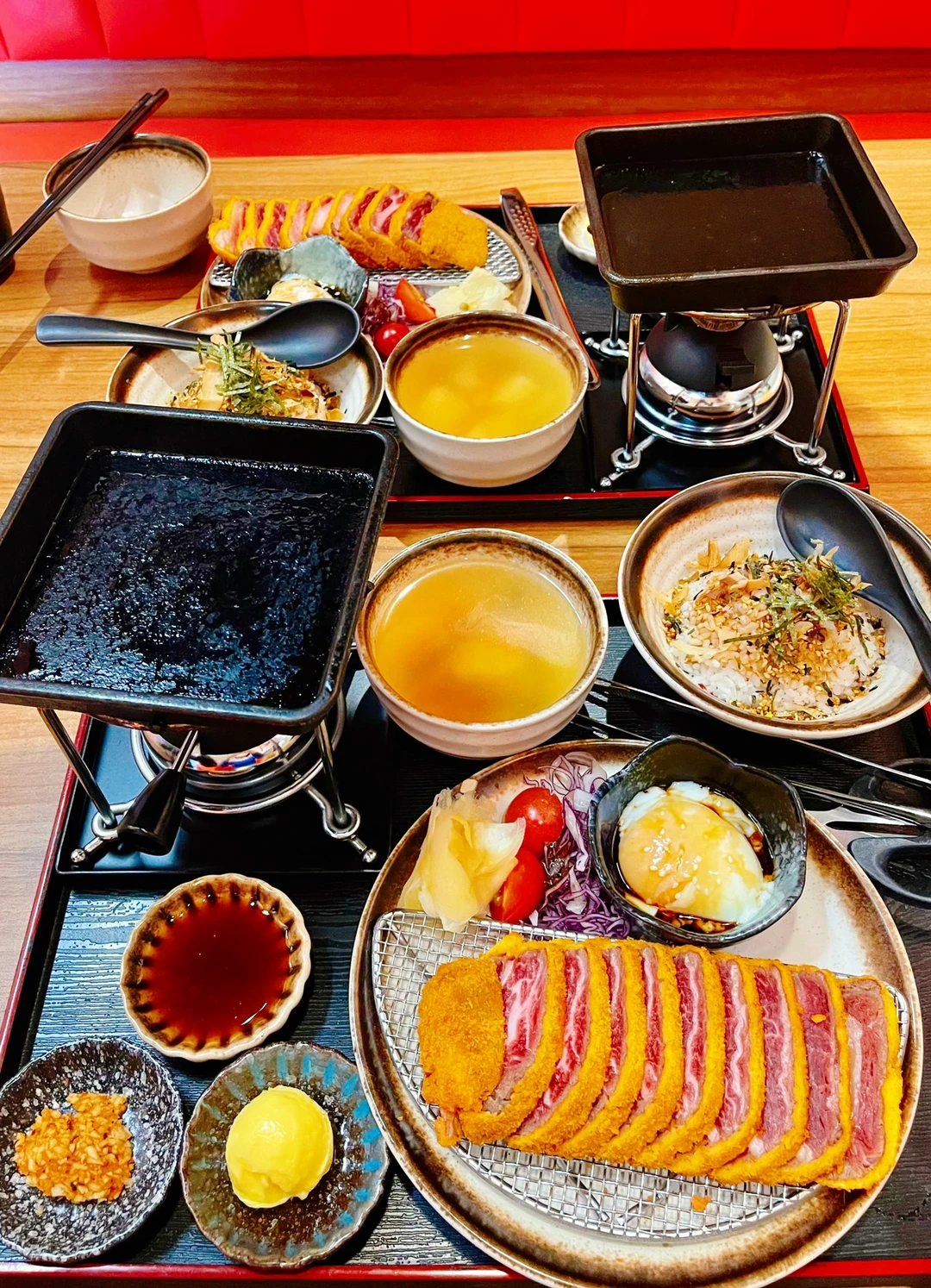 🌟店里的招牌就是极佳安格斯吉列牛定食,一人吃一份定食的量就够了✔️这个招牌定食真的有惊艳到我!老板都亲自上阵帮忙烤牛排,相较于以前吃的炸牛排裹粉感少了很多,外皮裹的粉不算厚的那种,加上黄油煎夹上蒜片真的好好吃!内里的牛肉很嫩,因为这个牛不是合成肉,是一片片现切的,我们点了两份定食,有切出来一份有好几块比较多的肥肉的牛!老板人真的很好!还说帮我们换掉,送了一份新品牛肉定食给我们吃,吃出了日式烧肉的感觉了。