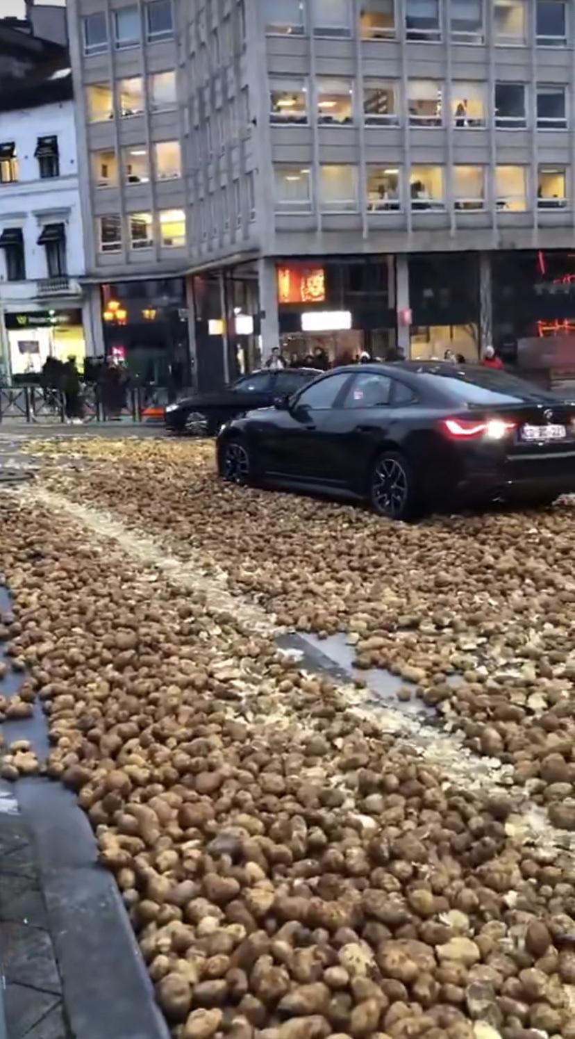 欧盟总部布鲁塞尔被农民倾倒在大马路上的土豆! 真别说土豆长得还挺好的,布鲁塞尔有部分群众也到现场,自己拿了几个回家煮土豆吃。 这次活动还是相对来说比较文明的,只是在现场进行倒土豆,之前可是开着粪车在议会大门前喷粪。 各位是怎么看的?欢迎评论区留言。