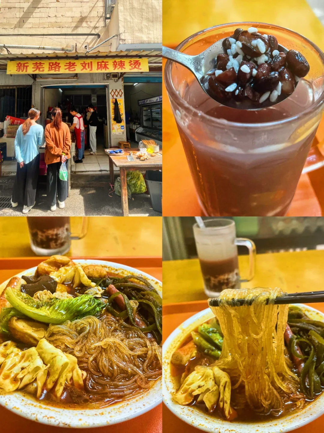 2⃣️老刘麻辣烫(大菜市场店):藏着小巷子里的麻辣烫,是开了多年的芜湖老字号麻辣烫‼️还是被我找到了💯到了店里还是排了一会儿堆,我点了粉丝、包菜、虎皮蛋➕各种蔬菜豆制品,才32R一大碗,拌上秘制的酱料汤底和辣椒,最后会淋上独家的甜酱,味道很浓郁又甜又香又辣🎏我点了中辣有点顶不住这个辣度,请大家来了点微辣,老板娘给我推荐了红豆酒酿解腻解辣,杯底的红豆和团子超好吸。