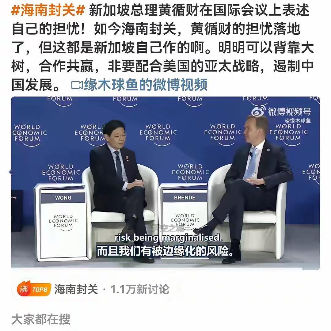 海南封关后, 最不开心的人出现了! 12月18日,海南自贸港正式启动全岛封关,这一中国高水平开放的标志性事件,却让新加坡总理黄循财在同期彭博经济论坛上难掩忧虑。 很多人疑惑,海南封关明明是中国的内政与发展布局,为何会让千里之外的新加坡如此紧张?其实答案,藏在一个月前的另一场论坛里。 11月的彭博论坛上,黄循财曾公开为发表涉台错误言论的日本站台,还呼吁中方“搁置历史”。如今面对海南封关的推进,他的焦虑背后,是对区域贸易格局变化的深层担忧。 要搞懂这层关联,得先明白海南封关的核心魅力在哪。封关后的海南,实行“零关税、低税率、简税制”政策,6600多种商品纳入零关税清单,企业所得税低至15%,远低于新加坡的17%。 更关键的是,海南背靠中国大陆庞大市场,又地处RCEP区域中心,8小时航空经济圈可辐射东南亚多国,这样的区位与政策叠加,自然会吸引全球资金、人才和贸易流聚集。 而新加坡这些年能坐稳东南亚经济枢纽的位置,靠的就是转口贸易和金融服务的优势。2024年其外贸总额占GDP超300%,其中90%都是转口贸易,中国更是它连续12年的最大贸易伙伴。 海南封关后,这种格局正在悄然改变。2025年前10个月,海南洋浦港直航东盟的货运量增长了120%,而同期新加坡至印尼的转口货运量下降了23%。 半导体、生物医药等高端领域的变化更明显,海南对进口半导体设备零关税的政策,吸引不少企业设立分拨中心,直接导致新加坡电子零部件转口贸易占比下降。 其实新加坡有担忧完全可以理解,毕竟任何区域贸易枢纽的崛起,都可能带来竞争格局的调整。但问题的关键在于,该用什么态度应对这种变化。 国际上有过不少前车之鉴。比如立陶宛,前两年为讨好美国在台湾问题上挑衅中国,允许台湾当局设立所谓“代表处”,还跟着搞对华贸易限制。 结果可想而知,中国暂停了部分贸易合作,立陶宛的农产品、木材等优势产品进不了中国市场,企业损失惨重,最终只能自食恶果。 反观新加坡,这些年的发展其实离不开中国红利。2024年中新双边贸易额达1111.1亿美元,大量中国货物经新加坡转口,众多中资企业在当地设立分支机构。 可黄循财此前的选边站言论,无疑在消耗两国多年积累的互信。要知道,台湾问题是中国内政,这是国际社会公认的事实,更是写进联合国宪章的准则,根本不存在“搁置”的可能。 更重要的是,海南封关从来不是为了取代谁,而是要打造一个全新的开放平台。中国一直主张互利共赢,对新加坡来说,这其实是合作机遇而非威胁。 比如海南封关后,国际物流、金融业务需求会大幅增加,新加坡如果能放下偏见积极合作,完全可以实现优势互补。像跨境电商、绿色金融这些新兴领域,双方的合作空间其实很大。 事实上,新加坡已经感受到了一些变化。2024年中资在新加坡的直接投资同比下降25%,而对海南的投资却增长了60%。这种资金流向的变化,值得深思。 现在的中国,早已不是以前的样子。我们有足够的实力维护核心利益,也有能力打造自己的开放平台,但这并不意味着要搞零和博弈。 海南封关是大势所趋,是中国推动高水平开放的必然选择,谁也阻挡不了。对新加坡而言,与其焦虑担忧,不如重新审视自身定位。 只要纠正错误立场,尊重中国核心利益,保持中立客观,新加坡完全可以继续享受中国发展带来的红利。毕竟在全球化时代,合作共赢才是长远之道。