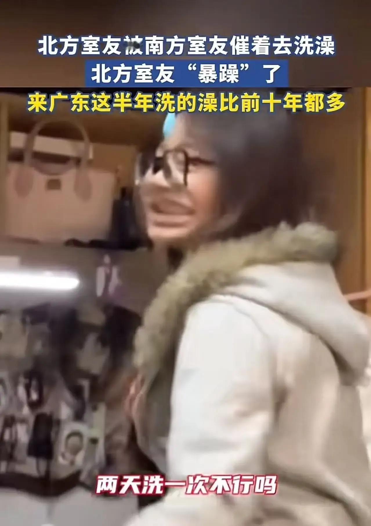 南北差异大到离谱!北方女孩去广东读大学,竟然被南方室友天天催着洗澡,这究竟是怎么回事呢? 原来啊,这位北方女孩来自河南,在她们那里,冬天冷得刺骨,一周洗一次澡,搓搓灰就完事儿了,根本不会天天洗。可到了广东,情况就大不一样了。广东的天气湿热,即使冬天也感觉不到冷,南方室友们几乎每天都要洗澡,觉得这样才能保持清爽。于是,这位北方女孩就遭殃了,天天被南方室友催着去洗澡,她忍不住吐槽:“天天洗,不怕把皮搓掉吗?搁我们河南,大冬天一周只搓一回澡啊!”不过,吐槽归吐槽,来广东半年,她洗澡的次数竟然比过去十年加起来都多,这也算是入乡随俗,体验了一把南方的洗澡文化。看来,南北差异真的不是一般的大,从洗澡这件小事儿就能看出来。 南北差异大,各有各的习惯,也各有各的乐趣。你身边有没有类似因为地域差异而闹出的趣事呢?快来评论区分享一下吧,让我们一起感受这多彩的地域文化!南方北方差异 南方洗澡习惯 南方人洗澡现状
