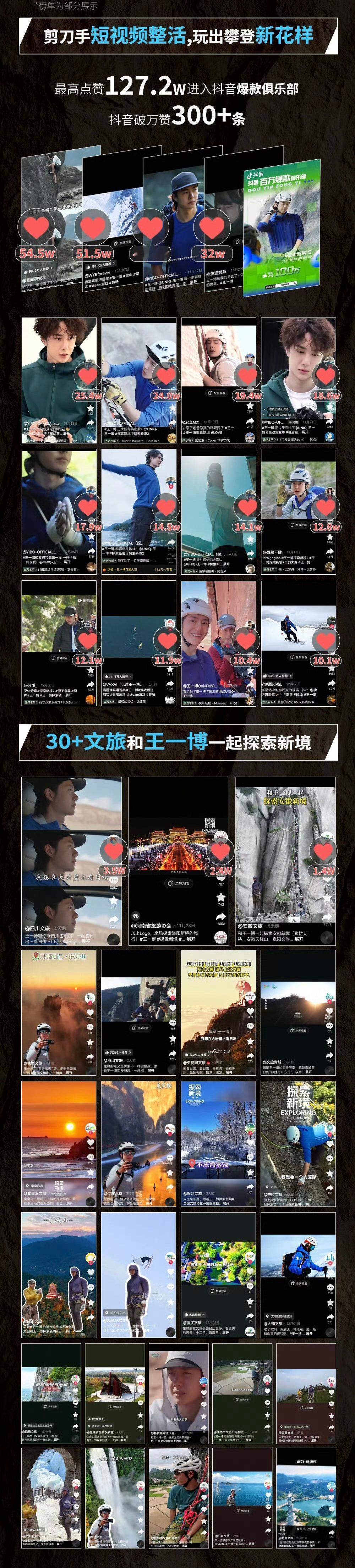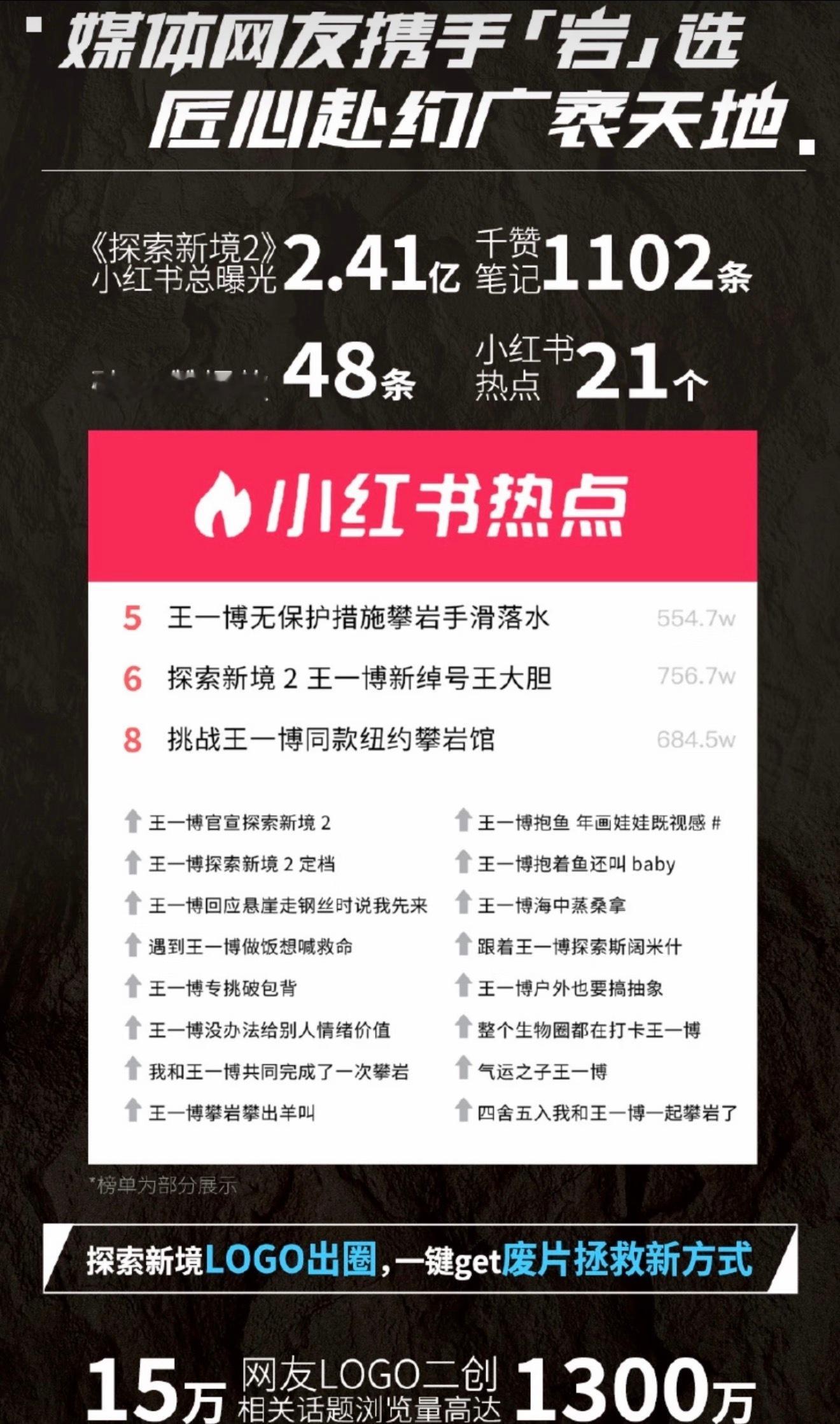 仔细看王一博探索新境2个人ip中期战报好牛,全是极高含金量的真实数据首位改版后单人单日微指破亿微博指数9284w大爆款抖百万点赞爆款俱乐部,这可是个纪录片比有些电影电视剧点赞都多,全靠自身热度发酵!小红书logo大赛15万人参与二创探索新境2