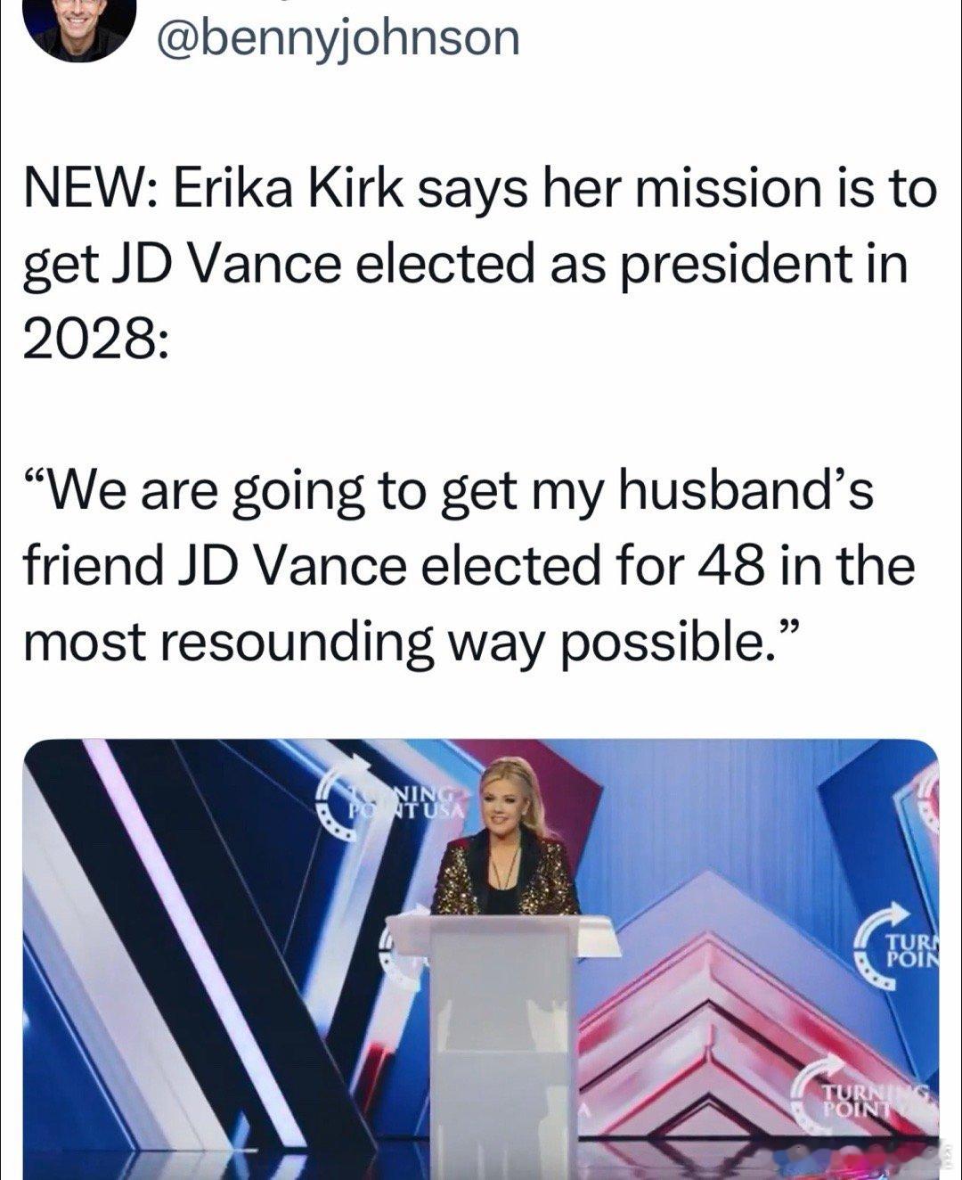 Kirk遗孀宣布:全力支持“我丈夫的好朋友”Vance2028竞选总统