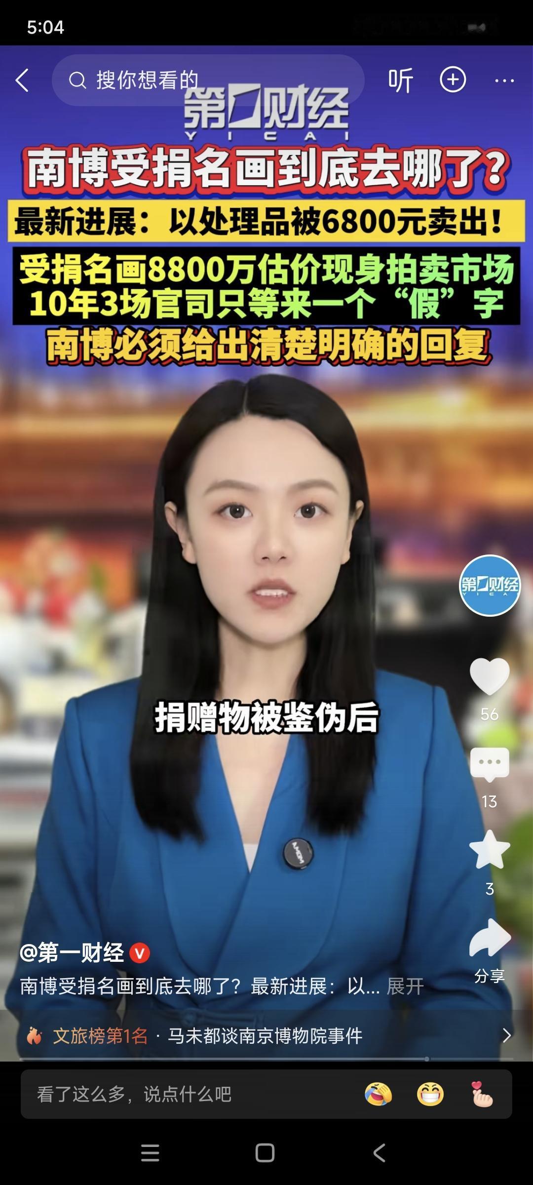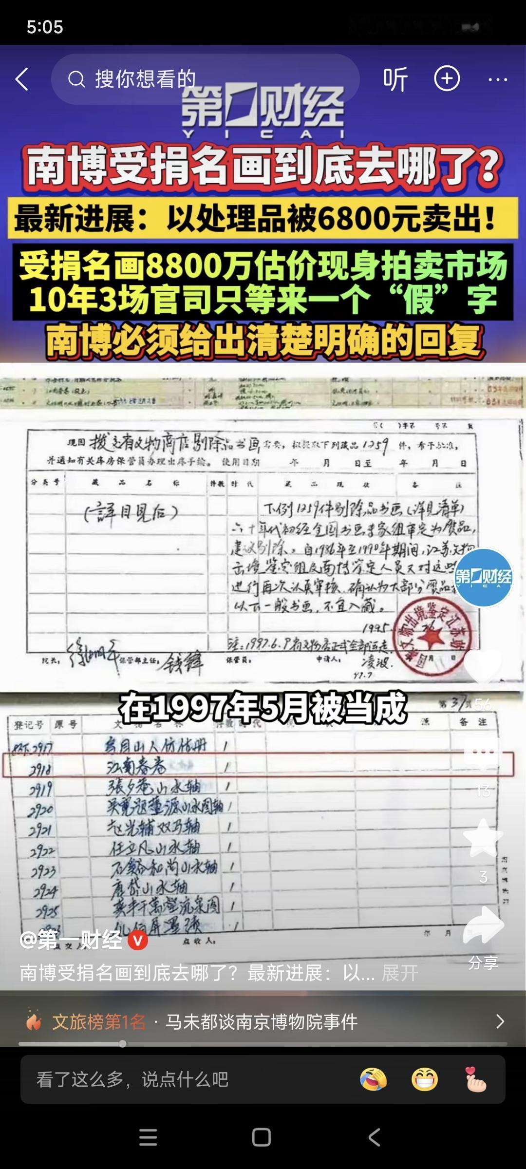 南博私自把个人捐赠的画作当作仿品,以6800元的价格售卖。要知道,那可是1997年,彼时的6800元,抵现在的10万都不止。 要是一幅假画,能卖出如此高价?谁会相信呢?必须找到当时的买家问个明白,究竟是真按仿品出售,还是让熟人以仿品之名买走,设了个局? 当时真就只卖了6800元吗?是否存在做假账的嫌疑,多卖少记账呢? 倘若真是赝品,如今能卖到8800万?是当时的鉴别能力不足吗?藏品价值鉴定 南博捐赠品 真是疑点丛生。