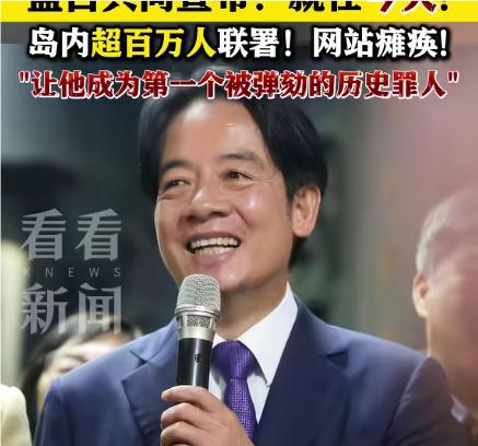 赖清德将被提案弹劾 近日,一场声势浩大的签名行动在台湾引起了广泛关注,短短一天内,超过百万人纷纷站出来表达心声,要求停止台独分裂的行径。这一规模之大,甚至让相关网站一度瘫痪,网友们纷纷猜测这到底是何等重要的事件。答案一针见血——这正是众多民众对赖清德等台独势力挑衅行为的强烈抗议,彰显了两岸同胞共同的心声:坚决反对台独,维护祖国统一! 这场由跨党派人士联合发起的签名行动,成为了近年来台湾社会对“台独”势力的集体呐喊。来自中国国民党和民众党的代表们,12月19日召开了记者会,正式提出了相关的抗议提案。这份提案直指赖清德的“逆行”——他公然无视两岸关系的历史与现实,将行政机关的决策凌驾于民意之上,肆意践踏立法权,破坏台海地区的和平稳定。 赖清德,这个被视为台湾未来“领导人”候选人的政治人物,其所作所为逐渐暴露出其“台独”野心。从不承认九二共识,公然鼓吹“两岸无隶属关系”,他的话语中充满了挑衅与分裂的味道。这不仅让岛内许多理性的民众感到愤怒,也让两岸同胞看清了他的真正面目:他不是台湾的管理者,更像是台海和平的破坏者和国家统一的绊脚石。 更令人气愤的是,赖清德竟然将法律当作摆设,任意践踏台湾地区的法律制度。他对财政收支划分法的漠视,无视民意机构的决策,肆意操控,严重破坏了台湾的法治基础。这种“无视民意,任意妄为”的作风,让岛内外都感到震惊和失望。人民网曾在2025年3月发表评论指出,这种“分裂操作”是台海局势不稳定的最大隐患,令人担忧未来的和平与稳定。 赖清德在“去中国化”方面更是动作频频。他试图篡改历史课本,将郑成功收复台湾、抗日战争等正史淡化甚至抹去。这些铁打的历史事实,是中华民族的血脉传承,是台湾同胞的根和魂。如今,被某些政治人物篡改的历史,不仅令人愤怒,更是数典忘祖的表现。人民网曾指出,这样的做法只会让台湾的未来变得更加迷茫与悲凉。 赖清德为了巩固“台独”势力的地位,拼命向美国靠拢,甚至不惜牺牲台湾的长远利益。据报道,他曾推动将台湾的台机电等重要产业迁往美国,投资数千亿美元,甚至动用400多亿美元采购军火。这些“外援”背后,隐藏着对台湾未来的深刻危机——一旦依赖外部势力,台湾就会变得更加脆弱和受制于人。 更令人担忧的是,赖清德对大陆的态度极为敌对,限制两岸交流。央视新闻曾报道,他死死抱住大陆旅游市场,不允许两岸直航全面恢复,还限制台湾民众申请大陆通行证,甚至将部分大陆城市列入“黑名单”。这些举措,让许多依赖旅游和交流的台湾民众苦不堪言,经济损失惨重。数据显示,2024年,台湾旅游业亏损高达6922亿新台币,众多依赖旅游的普通百姓失去了生计。 赖清德还利用“国家安全法”打压持不同政见者,限制那些主张统一的人士的表达自由。在岛内,甚至连普通村里长、基层民众都被“政治恐怖”笼罩。台湾的社会氛围变得愈发紧张,族群之间的情谊被撕裂,内心的矛盾与恐惧不断蔓延。这种“绿恐怖”,让许多台湾同胞感到心碎和无奈。 赖清德为了讨好美国,拼尽全力“卖台”。他推动把台湾的高科技产业迁往美国,甚至引入巨额投资,购买大量军火,试图以此“换取”国际上的支持。然而,这些“投机取巧”的手段,实际上是在毁掉台湾的未来。台湾的经济、科技、民生都在这场“自我牺牲”的游戏中逐渐崩塌。岛内的老百姓,尤其是那些靠旅游、农耕、制造业为生的普通人,日子越过越难,缺水缺电,物价飞涨,工作难找,却无力改变现状。 面对赖清德的“逆行”,绝大多数台湾民众都表达了不满。根据调查,接近八成的台湾人对他的施政表示失望。有人说:“多行不义必自毙”,赖清德的“台独”策略只会让自己孤立无援。国台办也早已表态,我们有坚定的意志和强大的能力,坚决捍卫国家的主权和领土完整。任何台独图谋,终究都将失败。 两岸同胞,血脉相连,文化相通。我们共同的根与魂,决不能被某些分裂分子所破坏。历史的车轮滚滚向前,谁也无法阻挡中华民族走向统一的步伐。正如大陆方面所强调的,和平统一是全体中华儿女的共同心愿,也是历史的必然选择。赖清德等“跳梁小丑”,终究会被历史记住,成为那些试图割裂国家、破坏和平的罪人。 台湾 两岸一家亲