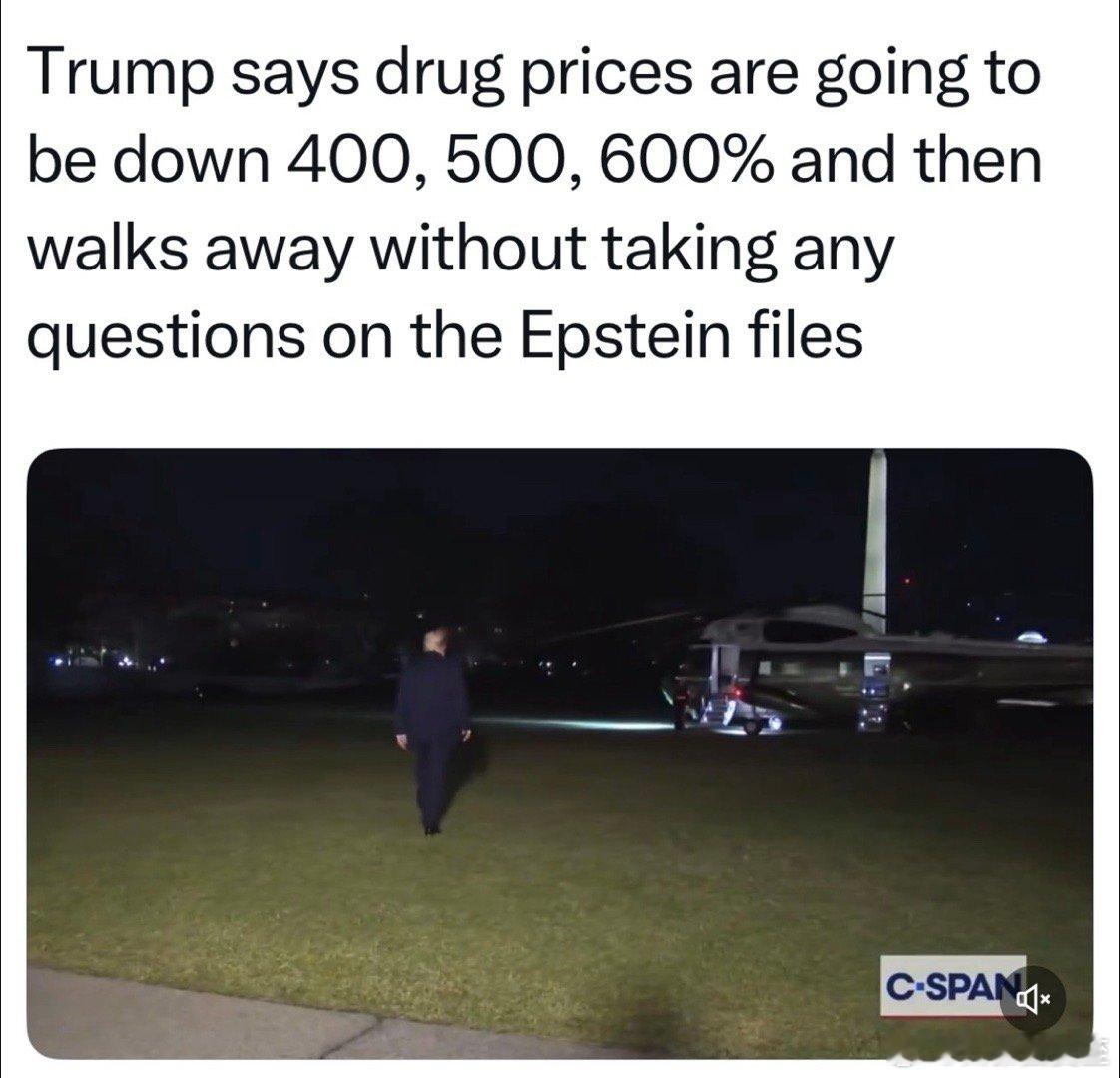 总统今天在白宫,宣布“制药公司同意降价,换三年不涨关税”,同时展示“移民金卡”离开白宫时,向记者宣布“美国药价会降400-600%”,没有回答关于Epstein档案的提问