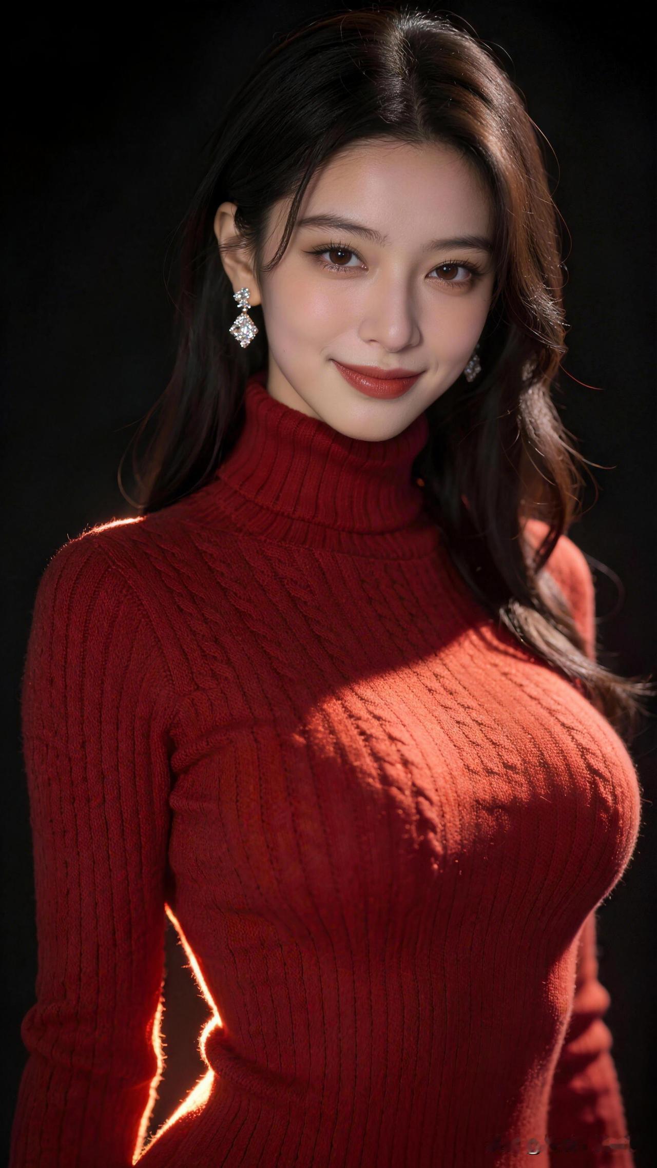 红衣美人,笑靥如花。你想娶什么样的人做老婆 优雅红衣,闪耀耳环,迷人微笑,时尚大片