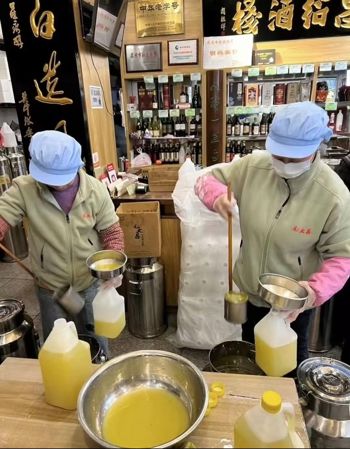 苏州冬酿酒真有这么好喝?半夜一堆人排队还真不是夸张。 在苏州每逢快到冬至,冬酿酒开拷时那场面太疯狂。有人提前一天晚上就搭帐篷排队,排10小时终于拷到酒。 这冬酿酒分瓶装和零拷,零拷类似散装,自己带容器装,新鲜又接地气。它原料是糯米加桂花,入口软、香气轻,不苦不辣。而且一年只酿一次,只卖一个月,和冬至习俗绑定,限量感十足。说实话,其实和米酒差不多,苏州本地人也不是全喜欢喝。 以前只是中老年人喜爱,现在年轻人也加入了排队大军,一直很困惑。 江南冬酿酒 在苏州为什么不喝苏州的黄酒?